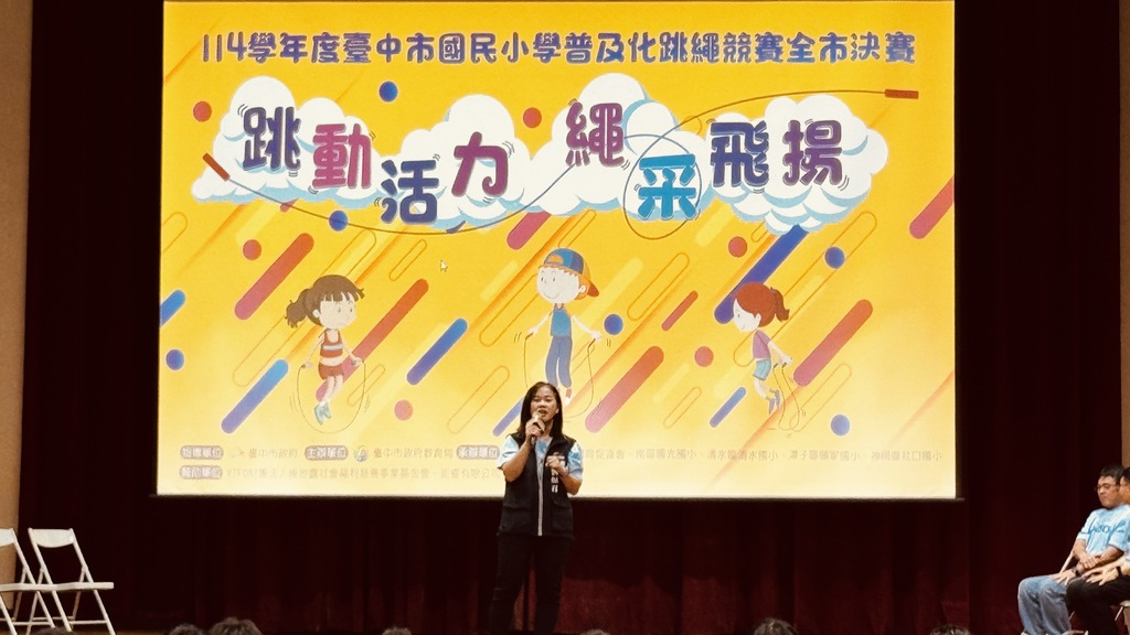 「114學年度臺中市國民小學普及化跳繩競賽」全市決賽今(30日)在南區國光國小精彩登場!來自全市各區的超過1,400名充滿活力的小選手們齊聚一堂,齊心協力爭奪中、高年級的冠軍寶座,競技場上氣氛熱烈,競爭激烈。 教育局指出,經過了1至3月的區域複賽,來自各區的57個最強隊伍挺進決賽,展現出精湛的跳繩技藝。最後由四張犁國小和文心國小分別榮獲中、高年級的冠軍,為這場激烈競爭劃下完美句點! 教育局專門委員劉姵君於開幕典禮致詞時表示,市長盧秀燕積極推動體育發展,鼓勵學生從小養成規律運動的好習慣,不僅能改善身體組成,還能增強體適能!此外,教育局透過「SH150政策」,積極舉辦各式體育競賽,激發學生的運 ...