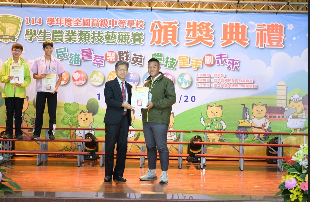 2025-11-24 教育局 報導點閱數:82 次教育動態教育部主辦「114學年度全國高級中等學校學生技藝競賽」農業類競賽於11月18日至20日在嘉義民雄農工辦竣,全國計31校、250位學生同場較勁,臺中市2所學校、10名學生參賽,最終新社高中獲得3優勝的佳績。 教育局長蔣偉民表示,市長盧秀燕重視並大力推動技職教育,教育局與本市各校攜手用心發展,本市已連續8年獲中央評鑑為技職教育「優等」;孩子們靠著堅持與努力獲得肯定,代表臺中農業教育的扎根與教師團隊的用心,為學生感到非常驕傲。 教育局指出,農業類技藝競賽項目包含農場經營、造園景觀、畜產保健、生物產業機電、食品加工及檢驗分析等9個職種,不僅與土地有實際深度連結,更進一步地運用科技,關心經濟動物健康及人民食品安全問題,並提升產業效能;賽事結合專業知識與實務操作,選手必須投入大量時間練習才能在全國舞台脫穎而出。本次新社高中榮獲3優勝,分別為張愛鈴同學及陳秉澤同學獲得農場經營職種優勝,以及蔡秉翰同學獲得造園景觀職種優勝。 新社高中校長林怡君表示,孩子們的進步,都來自一次又一次的重練、失敗、再站起來;能在全國競賽獲獎,是最珍貴的回饋。