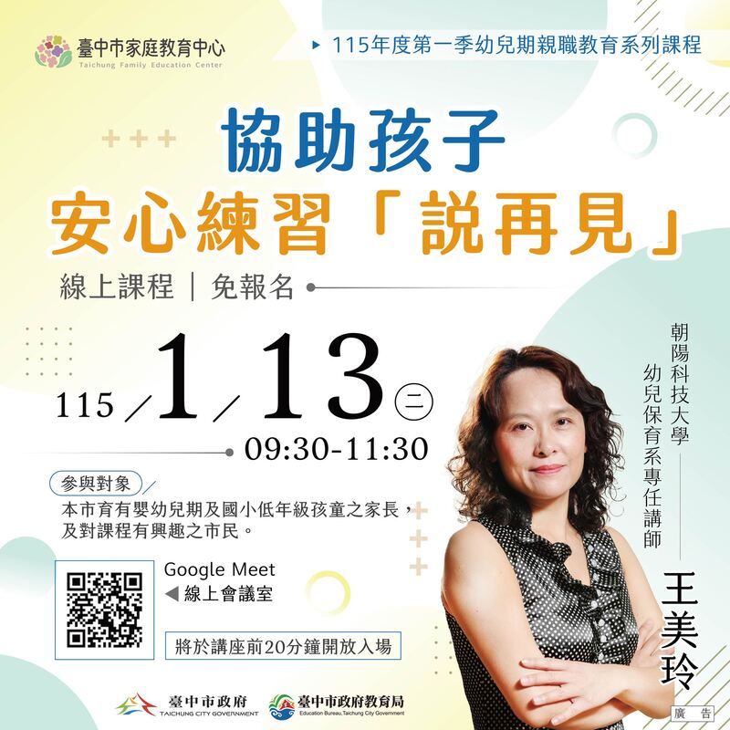 2026-01-16 教育局 報導點閱數:210 次教育動態面對孩子成長各階段的教養挑戰,您常感到焦慮與無助嗎?為協助家長掌握孩子情緒發展與教養關鍵,台中市家庭教育中心規劃115年度第一季「親職講座」系列課程,推出9場由專家傳授涵蓋幼兒期、學齡期及青少年期的教養方式,全數免費線上進行,家長可以不受時間與地點限制,彈性選擇適合孩子年齡的場次參與。 教育局長蔣偉民表示,家庭是孩子學習情緒管理、人際互動與價值觀建立的第一個場域,市府長期重視家庭教育的扎根工作,透過系統化、分齡設計的親職課程,協助家長在不同階段掌握合適的教養方式,陪伴孩子穩健成長。 家庭教育中心說明,第一季課程內容包括「協助孩子安心練習說再見」、「幸福從家庭開始:打造有愛有序的家」、「青少年身心發展與父母角色轉型:從管教者到顧問/教練」等9場講座,全程免費。 首場線上課程已於1月13日率先登場,邀請朝陽科技大學幼兒保育系專任講師王美玲,聚焦孩子第一次面對分離焦慮時,家長如何以適切方式陪伴孩子安心說再見;專家建議幼兒期課程以建立安全感與情緒穩定為核心,協助家長理解孩子行為背後的情緒需求,並透過日常教養策略,引導孩子逐步累積面對挑戰的勇氣。 其次,學齡期課程則回到家庭互動本身,從營造有愛有序的家庭氛圍出發,陪伴孩子因應學習與生活角色轉換,並透過親子對話練習,協助家長在忙碌生活中,重新找回與孩子拉近關係的黃金時刻,讓溝通不再只剩叮嚀與要求。 家庭教育中心指出,進入青少年期,親職角色也必須隨之調整;相關課程引導家長理解青少年的身心發展歷程,學習從「管教者」轉為「顧問與教練」,在面對霸凌、毒品與偏差行為等高風險議題時,強化預防與陪伴能力,同時協助家長在孩子情緒風暴來臨時,穩住自己的情緒,成為孩子可信賴的支持者。 相關課程資訊,請至台中市家庭教育中心臉書粉絲專頁或官方LINE(ID:@tcfamily)查詢。