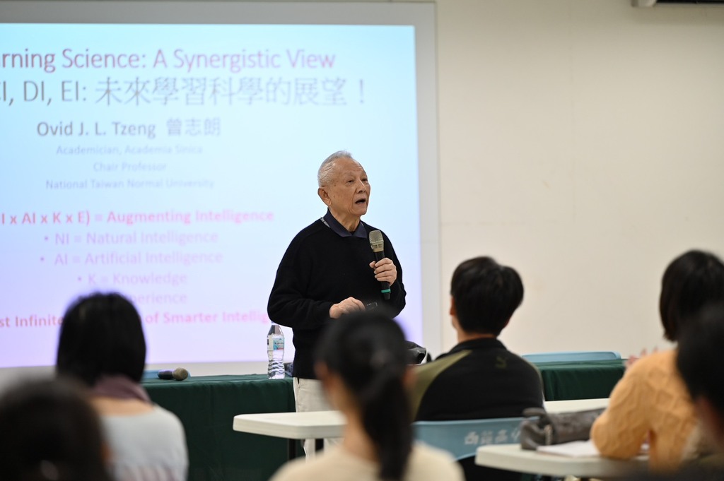 2026-02-09 教育局 報導點閱數:107 次教育動態為強化學子面對未來科技的整合能力,臺中市政府教育局(7日)於市立西苑高中舉辦第5場「傑出科普講座」,邀請中央研究院院士曾志朗親臨開講,以「AI, BI, CI, DI, AND EI: Prepare for Future Learning Sciences」為題,帶領現場聽眾深入探討跨學科整合的科學實務與生命教育,為學子開啟一場高層次的知識饗宴 。 教育局長蔣偉民表示,這場活動由教育局主辦的「優遊臺中學」與國立彰化師範大學、國立自然科學博物館邀請專家學者為學生們提供免費學習機會,「優遊臺中學」一直致力於打破校園邊界,為學生尋找最優質的跨域學習資源 ,非常榮幸能邀請曾志朗院士以其深厚的語言學與認知科學背景,引導學生理解在 AI 浪潮下,真正的勝負不在於技術堆砌,而在於群體智慧與人文精神的融合。 蔣局長進一步強調,教育局將持續透過策略聯盟,將深奧的科普知識轉化為具體的實踐力,確保臺中學子在未來的科學賽道上,不僅擁有技術實力,更能兼具深厚的人文底蘊。 本次講座由國立彰化師範大學、國立自然科學博物館及臺中市政府教育局共同主辦 ,現場除了國三至高三的熱血學子外,亦吸引許多教師及民眾踴躍參與。 曾志朗院士在講座中指出,面對未來科學的快速變遷,不同學科的知識不應只是片段的「湊合」。他強調,學問必須從簡單的「組合」走向深度「整合」,最終提升至「融合」的實務操作,才能真正展現「知識就是力量,融合才能化腐朽為神奇」的真諦 。 曾院士也勾勒出以「AI 與未來科學及生命教育」為核心的「五I思維架構」,引領現場學子重新思考未來競爭力的本質。他指出,我們應從AI的工具運用與模擬技術出發 ,回歸 BI(Biological Intelligence)去探尋生命的生物智慧本質,並結合 CI(Collective Intelligence)的群體智慧來強化社會連結;同時,透過 DI(Digital / Data Intelligence)進行數位與資料的跨領域整合 ,最終轉化為具備敏銳覺察、同理心與韌性的 EI(Educated Intelligence),進而實踐「民胞物與,天人合一」的高層次人文精神境界 。