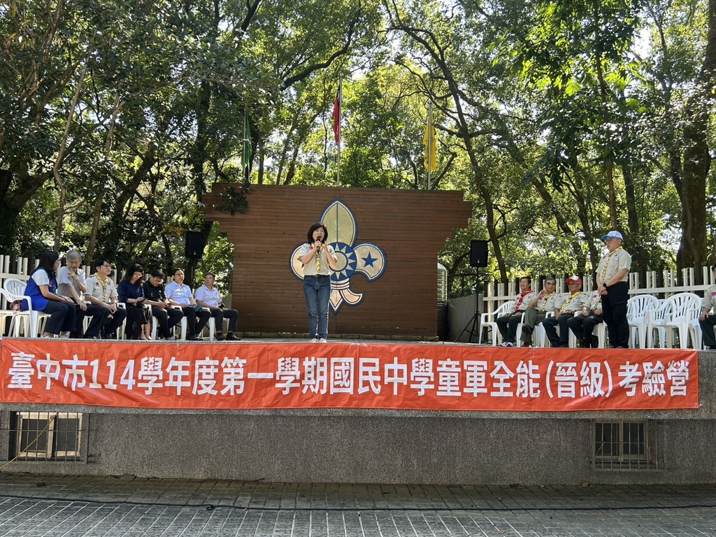 教育局長蔣偉民表示,臺中市的童軍教育有著深厚的傳承,國中童軍全能晉級考驗營更是年度重要盛事,今年大會主題為「四海同心,育見未來」,期許童軍夥伴們能透過團隊合作,凝聚共識,並在學習與冒險中培養宏觀的視野,邁向更寬廣的未來;透過此次活動,讓更多孩子在童軍訓練中找到自信、培養獨立精神,並內化為終身受用的能力與態度。