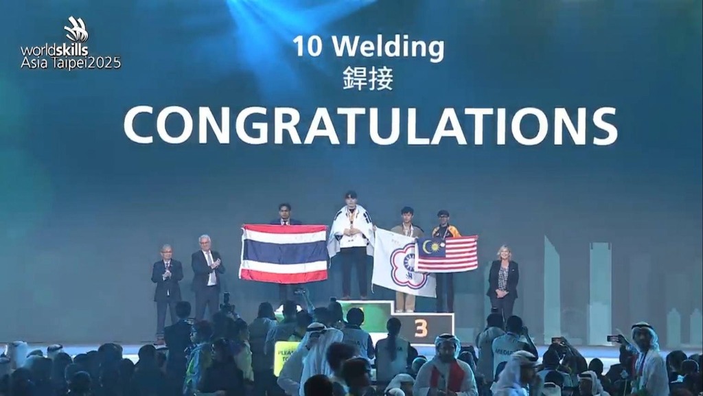 由勞動部主辦的2025亞洲技能競賽(Worldskills Asia Taipei 2025),11月27至29日於臺北南港展覽館舉行,本次競賽匯聚來自31個國家、千位代表團成員,賽事吸引近千人參與、逾300位青年選手同場競技,臺中市選手在4個職類,獲得2金1銀2銅佳績,精湛技藝獲得肯定,表現相當亮眼。