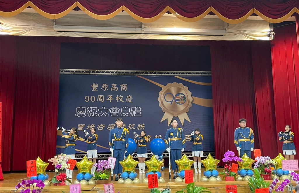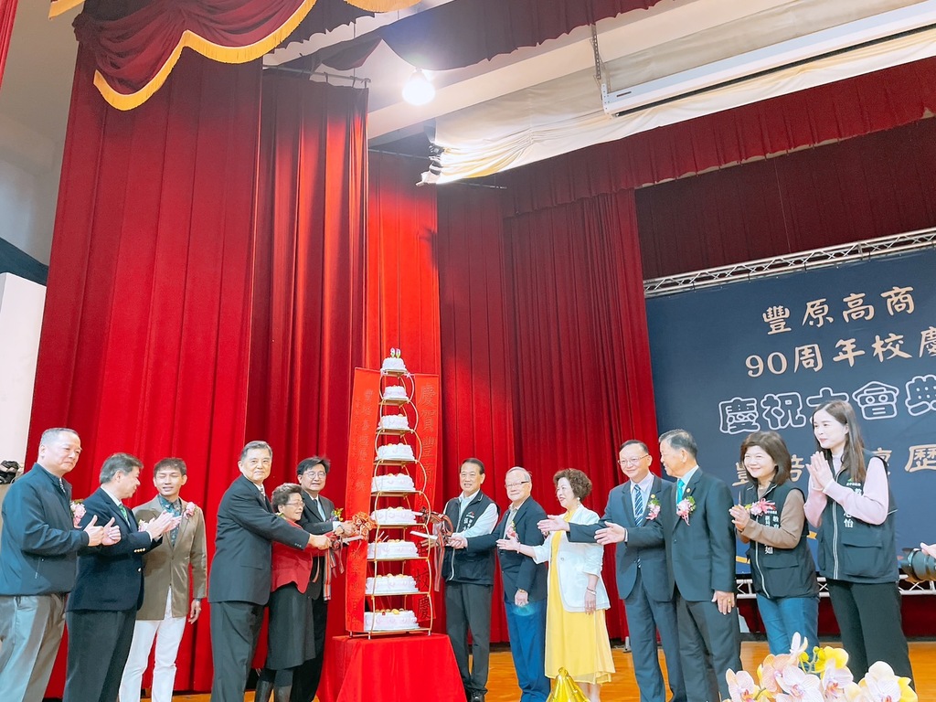 台中市立豐原商業高級中等學校(13)日舉行創校90週年校慶大會與運動會,校園洋溢熱鬧與祝福的氣氛。台中市政府由副秘書長張大春代表出席,與校長賴炘棠、家長會、校友會、文教基金會及在地貴賓共同參與校慶石碑揭牌儀式,象徵學校邁向百年校慶的新篇章。