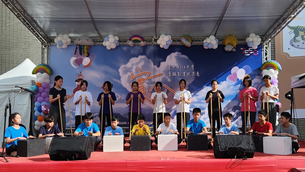 在舞臺表演部分,除了由和平國中以泰雅族舞蹈與傳統歌謠熱情開場外,臺中市私立磊川華德福實驗教育學校也帶來別具特色的木棍陣表演;慈興學苑以經典朗誦呈現語文之美,牧心蒙特梭利實驗教育團體則透過歌舞劇展現學生的創意與自信。此外,多位個人自學生亦參與演出,從太極拳、民族扇舞、芭蕾舞,到韓團舞、樂器演奏及動漫歌曲等,內容多元豐富,為本次成果展增添更多精彩亮點。