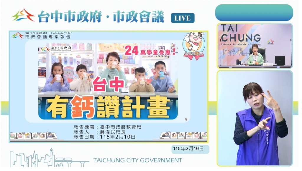 此外,市府同步建置「台中有鈣讚政策網站」,提供最新消息、兌換方式、懶人包及Q&A等資訊,便於家長查詢;政策上線前也辦理三場說明會,針對公立國小及公私立幼兒園說明操作方式、規範及替代方案。