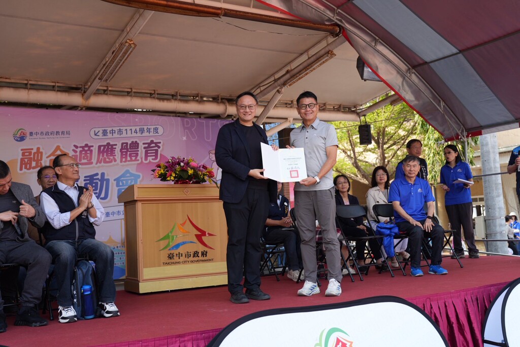 由臺中市政府教育局與臺中市身心障礙體育總會共同主辦「臺中市114學年度融合適應體育運動會」今(20)日於市立臺中特殊教育學校熱鬧登場,副市長鄭照新到場支持並鼓勵所有選手,活動匯聚本市高中以下31所學校計1,300人熱情參與,為上屆的4倍規模,充分展現臺中市持續深耕融合教育與適應體育的豐碩成果,也象徵各校對多元共融與運動平權理念的高度重視。