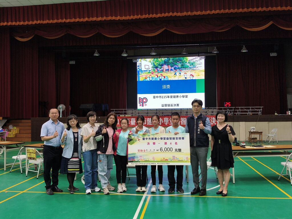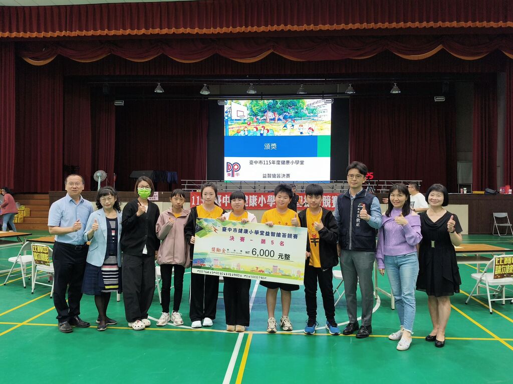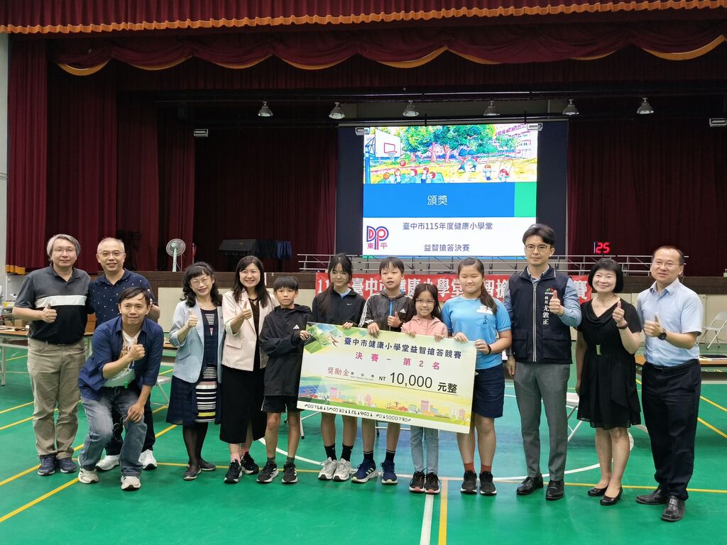 臺中市校園健康促進盛事之一「臺中市115年度健康小學堂益智搶答競賽」全市總決賽,於今(30)日上午於南屯區大新國小熱鬧登場;歷經中、屯、山、海四大區分區初賽的搶答激戰後,選拔出14所國小菁英隊伍進入今天的決賽展開終極對決,現場搶答戰況激烈,最終由南屯區大墩國小憑藉紮實的健康促進素養與驚人反應能力,拿下冠軍寶座,獲封115年度「健康知識王」!