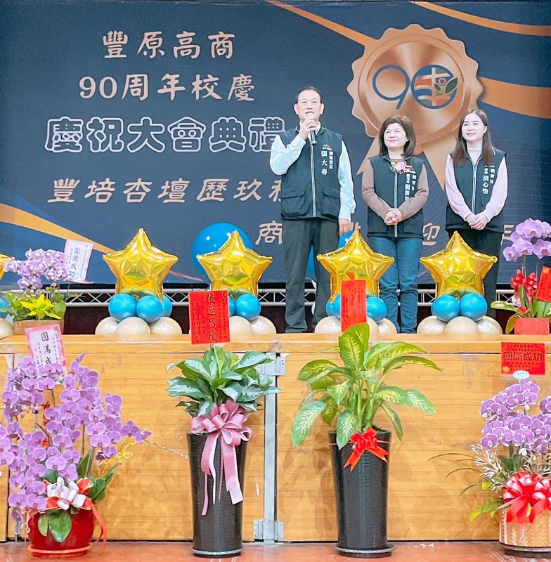 2025-12-15 教育局 報導點閱數:246 次教育動態台中市立豐原商業高級中等學校(13)日舉行創校90週年校慶大會與運動會,校園洋溢熱鬧與祝福的氣氛。台中市政府由副秘書長張大春代表出席,與校長賴炘棠、家長會、校友會、文教基金會及在地貴賓共同參與校慶石碑揭牌儀式,象徵學校邁向百年校慶的新篇章。 台中市政府教育局說明,此次校慶以「豐培杏壇歷玖秩,商育桃李迎百年」為主題,自年初起串聯多項活動,涵蓋校慶電影競賽、植栽綠化、校史回顧展、藝文創作展、校友返校活動與體育競賽等,展現校園在教育、藝文及體育領域的多元發展。 張副秘書長致詞時表示,他肯定豐原高商在技術型高中轉型的浪潮中展現積極創新精神,豐原高商自民國24年創校以來,始終秉持「有教無類、因材施教」的核心理念,並透過「素養豐商」專業品牌的建立、「AI 校園」的深化發展、「教師社群共備」的推動以及「友善校園」與多元進路輔導的完整建置,使學生在升學與職涯探索上均展現亮眼成果。他並感謝家長會、校友會與文教基金會長期支持,使學校在少子化與教育變革的挑戰下,仍能穩健前行,持續成為山城地區的教育重要力量。 賴校長也表示,九十週年不只是一項紀念,而是開啟下一個十年的重要起點,學校未來將持續深化商業教育特色,強化AI科技應用與數位素養,並與產業及大專院校建立更緊密的合作關係,同時拓展國際教育交流,使學生能具備更全面的能力在全球化環境中自信前進。 教育局指出,豐原高商長期深耕技職教育,不僅孕育多位產業優秀人才,也透過豐富的專業科系、完善的教學設備及學生支持系統,展現技術型高中在地化、專業化與創新化的教育價值;未來教育局將持續協助學校在課程、設備與跨域合作上的需求,攜手打造更具韌性與前瞻性的學習環境。 當日活動,立法院副院長江啟臣、立委楊瓊瓔、台中市議員陳清龍、議員謝志忠、市府副秘書長張大春、教育局副局長賴緣如等人皆到場共襄盛舉。