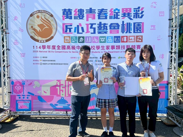 2025-11-19 教育局 報導點閱數:118 次教育動態教育部主辦「114學年度全國高級中等學校學生家事類技藝競賽」日前公布成績,11月13日至15日在桃園中壢家商舉行,全國104所學校、441位選手同場競技,在為期3天的激烈競賽下,臺中市學生的技藝大放異彩,最終獲得10金手、26優勝及2團體獎的優秀成績,獲獎總數蟬連六都第一。 教育局長蔣偉民表示,市長盧秀燕重視並大力推動技職教育,在教育局與本市各校的合作發展下,本市已連續八年獲中央評鑑為技職教育「優等」縣市;市府除每年持續投資技職教育軟硬體設施,今年還透過「金手培訓計畫」強化學生的技藝競賽培訓歷程,提供師生強力後盾;去年本市選手在全國家事類技藝競賽獲獎總數是六都第一,今年再次蟬連六都第一,是臺中市的榮耀,特別感謝學校及老師的用心教導。 教育局指出,全國技藝競賽分為5大類,分別為工業類、商業類、家事類、農業類及海事類,是技職選手們的年度盛事,亦是學生展現平時技藝成果的機會。以家事類來說,競賽項目涵蓋食、衣、住、育、樂五大範圍,餐飲服務、服裝設計及製作、室內設計、幼兒教育製作、美顏及美髮等11個職種,在激烈的賽事中切磋技藝,不僅考驗著學生的巧思,更激盪出學生的創意。 本次獲獎的學校成績如下:明德高中獲得4金手1優勝1團體獎,明道高中獲得2金手1優勝,僑泰高中獲得1金手7優勝,臺中家商獲得1金手5優勝,致用高中獲得1金手2優勝1團體獎,青年高中獲得1金手1優勝,明台高中與慈明高中各獲得3優勝,嶺東高中獲得2優勝,葳格高中獲得1優勝,總計獲10金手、26優勝及2團體獎。