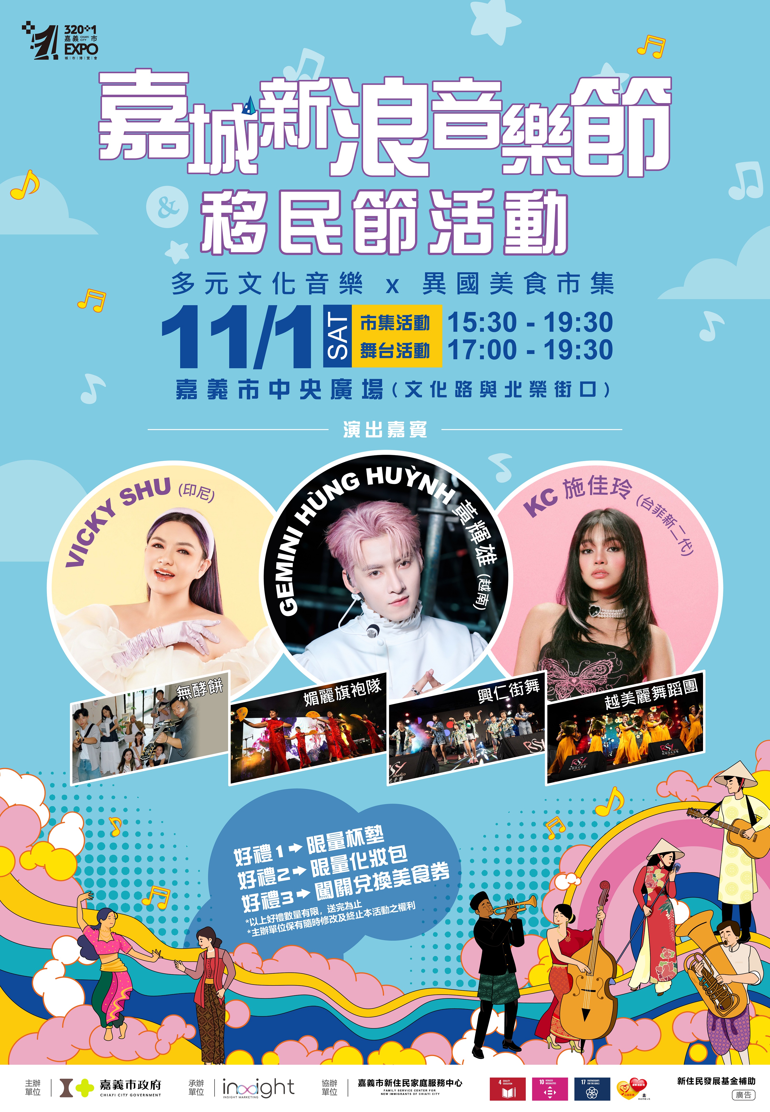轉知嘉義市政府辦理114年度「嘉城新浪音樂節暨移民節活動」,請查照。
