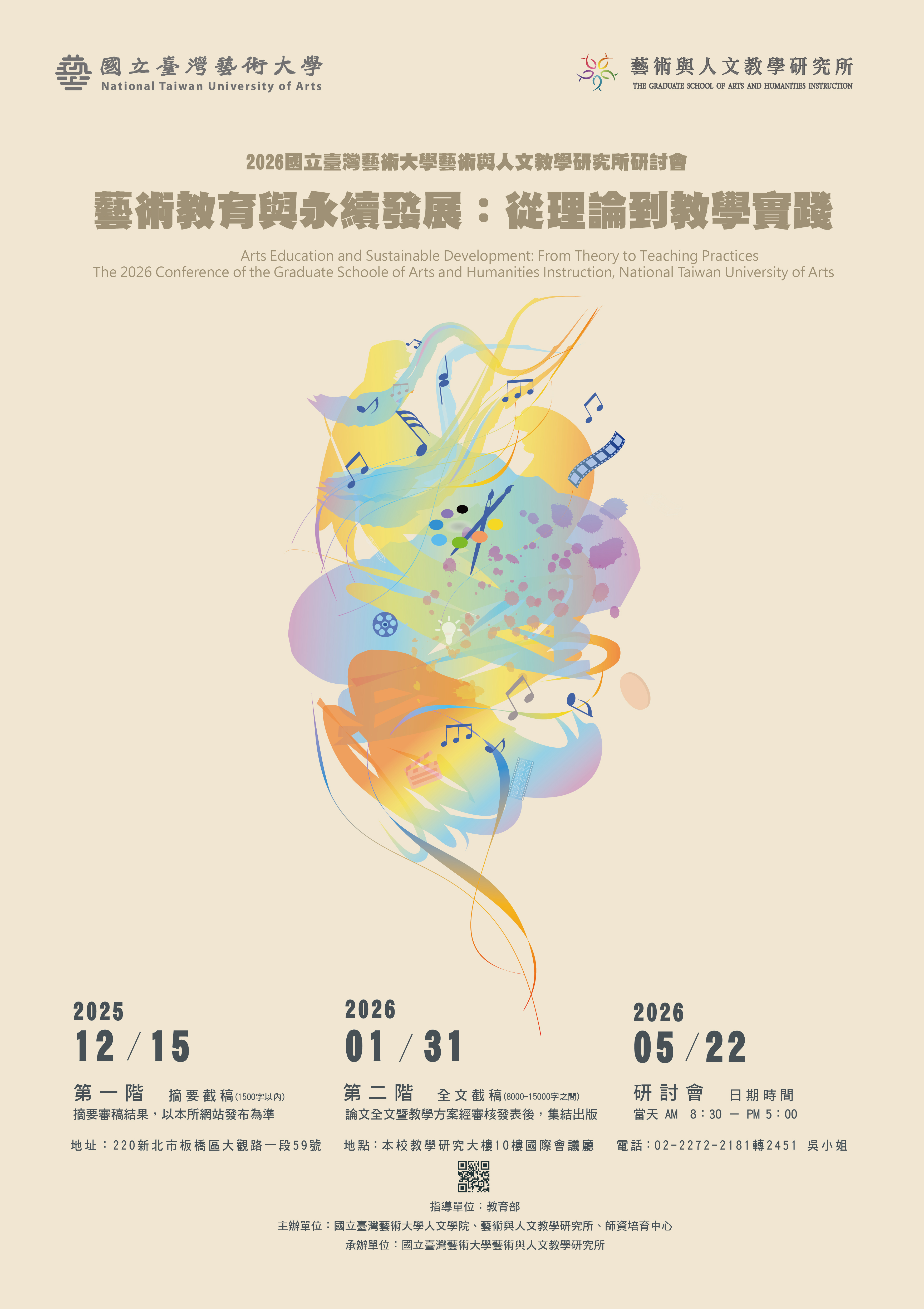 轉知國立臺灣藝術大學辦理「藝術教育與永續發展:從理論到教學實踐」學術研討會活動資訊,請查照。