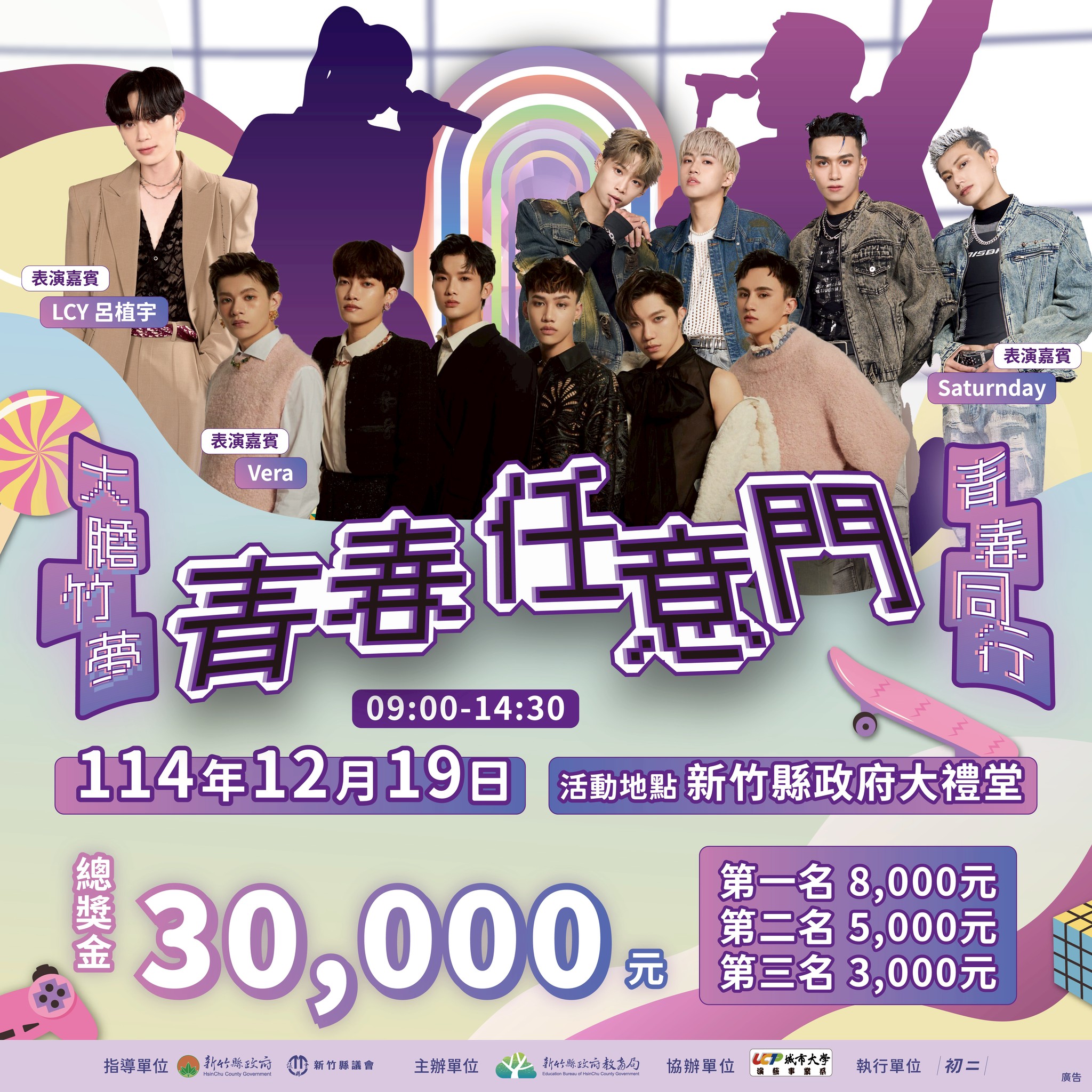轉知新竹縣政府教育局辦理「114年新竹縣成年禮-青春任意門」青年競演遴選活動訊息,請查照。