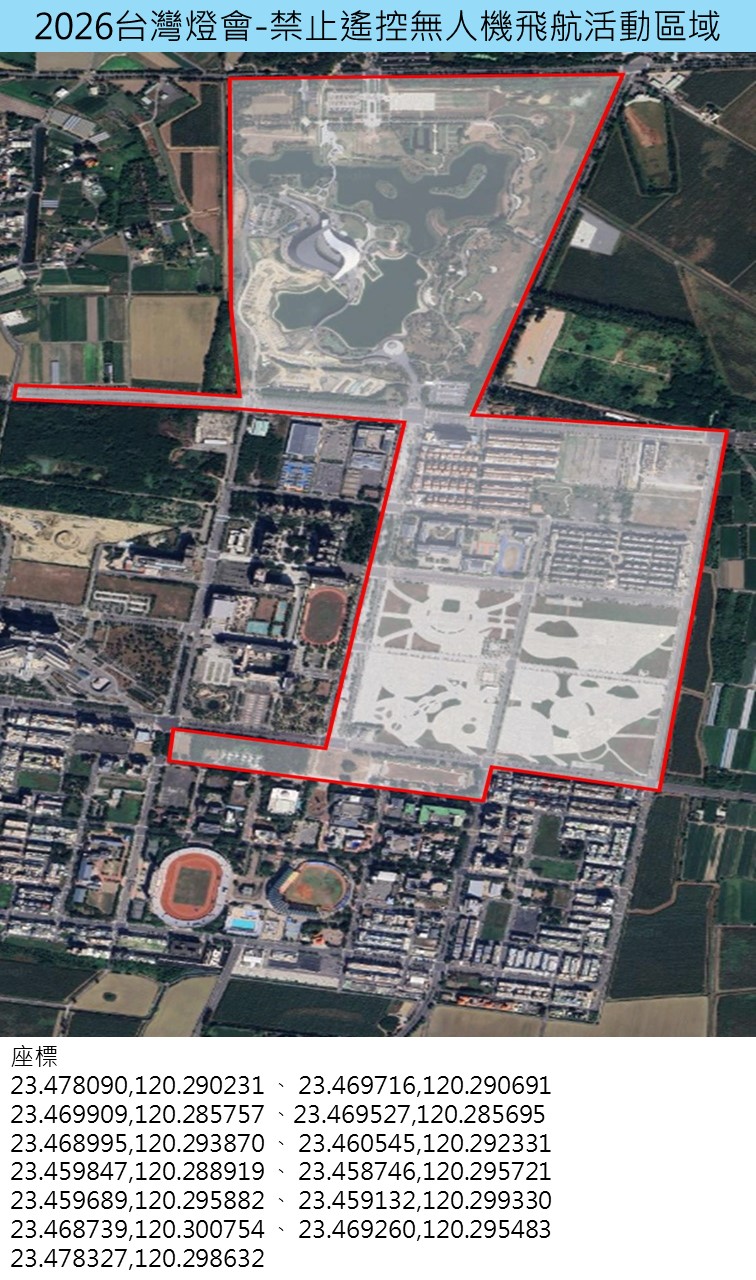 轉知嘉義縣政府辦理「2026台灣燈會在嘉義」活動禁止遙控無人機飛航活動區域及時間公告1份,請查照。