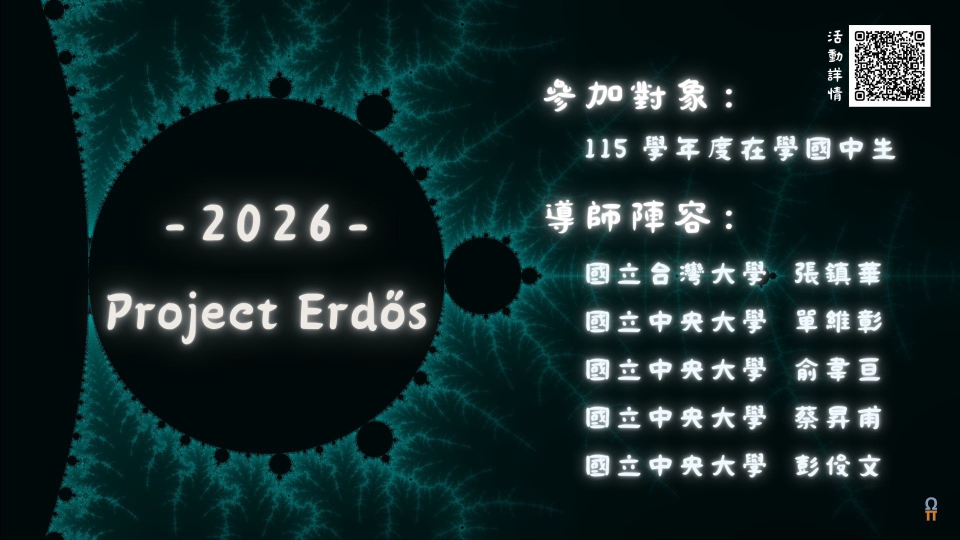 (三)報名方式:報名至115年3月31日(二)止,報名網址:https://ps1tw.astro.ncu.edu.tw/ttss/index.php/2026-project-erdos/。