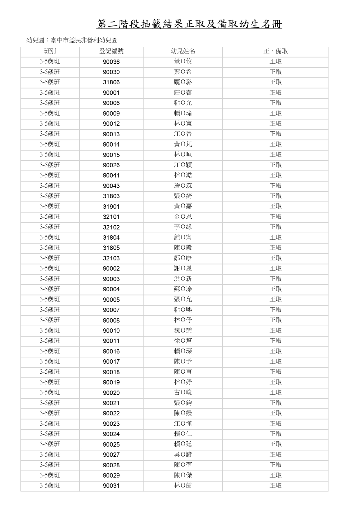辦理抽籤地點:臺中市益民非營利幼兒園