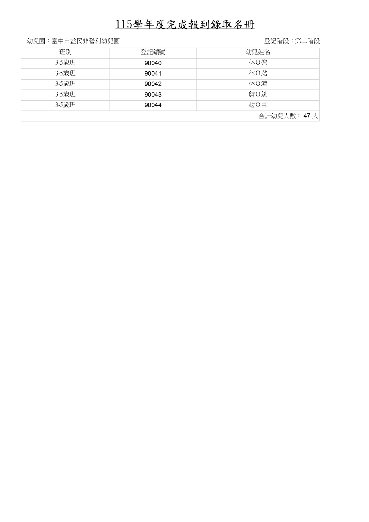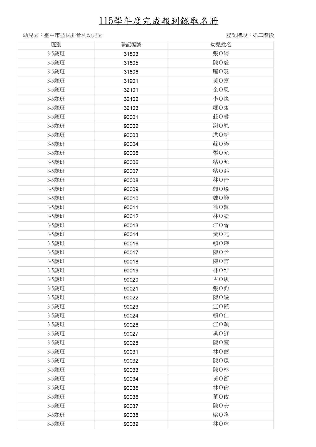 115學年度招生-第二階招生完成報到名單