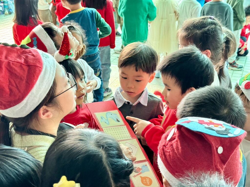 2025-12-24 南屯區 南屯幼兒園 陳議濃 報導點閱數:143 次教學活動明天(25日)就是聖誕節了,今年適逢行憲紀念日放假,不少學校的聖誕慶祝活動也提前在今天舉行。在南屯幼兒園,每一年聖誕節總少不了精心規劃的特別活動。從2022年聖誕老公公親自來送禮、2023年的魔術聖誕秀,到2024年10公尺聖誕樹野餐趴,每一年都帶給孩子不同的驚喜與期待。今年,南屯幼兒園再次突破以往,全面翻轉活動形式,打造出前所未有的全新體驗。 今年特別將戶外活動移至室內,善用建築空間關燈後宛如夜晚的氛圍,以及建築內部多變、挑高的結構特色,精心打造出獨一無二的「南屯耶誕城」,讓孩子們在校園裡也能感受到儀式感滿滿的聖誕節。 本次佈置除了豐富的燈飾外,也巧妙結合樓梯高低差與各區域特性,規劃出多個主題燈區,包括雪人區、薑餅屋區、糜鹿鋼琴區、雷射投影區與北極熊區等,處處充滿驚喜。另有配合小班群設計的三棵特色聖誕樹—啄木鳥超級大樹、繽紛閃亮聖誕樹與心手印聖誕樹,每一棵不僅風格獨具,更掛滿全園師生的回饋與支持小卡,展現南屯幼兒園滿滿的凝聚力與溫暖情感。本屆主燈則是一座高達5公尺的超大雙子星燈,搭配18條閃爍燈線,宛如一棵璀璨發光的巨型聖誕樹,吸引師生駐足欣賞、讚嘆不已。 今年的聖誕活動一開場便充滿戲劇張力,全園師生齊聚天空階梯,聖誕老公公親切現身迎接大家。正當孩子們以為即將開始發送禮物時,兩道白煙突然噴出,一名黑衣神秘人從禮物堆中躍上舞台中央,瞬間劫走聖誕老公公與禮物,只留下滿地謎題,宣告要將他們關在某處。孩子們雖然一度驚訝,但很快就振作起來,紛紛表示要趕快解謎,找回聖誕老公公與大家期待的禮物。「拯救聖誕老公公大作戰」也就此正式展開。 孩子們依循黑衣神秘人留下的線索,陸續走進建築物內尋找提示。走進耶誕城後,眼前繽紛璀璨的燈景讓孩子們驚呼連連,在各個燈區前流連忘返,捨不得離開。然而,大家也沒有忘記任務,一邊欣賞美麗佈置,一邊認真搜尋提示卡片,整棟建築上下樓層都不放過。最終,孩子們成功找齊六張提示卡,拼湊出關鍵線索,得知聖誕老公公被關在天空階梯旁的小倉庫裡。於是大家開心前往營救,果然順利找到聖誕老公公,打開房門,成功救出聖誕老公公與禮物,為今年的活動畫下圓滿句點。 今年的聖誕節活動讓師生感受到截然不同的節慶風格,不僅繽紛有趣,更充滿解謎冒險的樂趣。白鼻心班幼生周采逸開心地說:「我很高興把聖誕老公公和禮物救出來,這樣大家就可以一起過聖誕節了。」樹蛙班幼生李承鴻也分享:「我最喜歡大大的聖誕樹,閃亮亮的,真的好漂亮。」水獺班王雅雯老師說:「今年的聖誕節活動很不一樣,透過「拯救聖誕老公公」的任務,讓孩子在故事、探索和合作中學習。活動一開始,孩子先觀賞聖誕老公公被壞人綁架的戲劇表演,並在場留下了線索卡;孩子觀看戲劇時,展現高度專注,對劇情感到新奇又投入。接著進行尋找提示卡,孩子在點綴著聖誕氛圍的燈光中,尋找並蒐集六張提示卡,最終完成拯救聖誕老公公的任務,過程充滿驚奇感。今天的活動帶給孩子豐富的感官與情境體驗,是一次難忘的聖誕節活動。」 負責策劃活動的教務組長蕭文嘉說:「今日舉辦「搶救聖誕老公公」活動,孩子們透過團結合作與腦力激盪,一步步解開線索,努力尋找聖誕老公公的下落。活動結合南屯市幼園區各角落的耶誕城燈會,孩子們在解題的過程中邊走邊欣賞繽紛的燈飾,充滿探索與驚喜。透過遊戲化的學習與實際體驗,不僅培養孩子的合作能力與思考力,也讓孩子在歡樂溫馨的氛圍中,留下難忘而美好的聖誕節回憶。」園長陳議濃表示:「今年聖誕節的主軸改變形式,為了保留夜晚般的特別氛圍,特別將整體佈置轉向室內空間。同時結合小班群活動、大型主燈與多元主題燈區的概念,讓整體設計更貼近縣市聖誕燈會的規模與感受,也希望讓無法前往新北耶誕城的孩子們,能在學校裡就近實現心中的聖誕願望。」