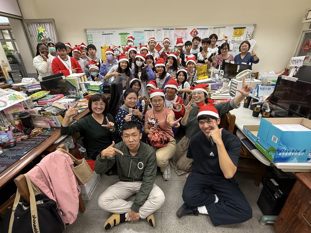 2025-12-24 沙鹿區 沙鹿國中 教務處 報導點閱數:25 次校園新聞今天在辦公室吃飯的時候,突然聽到聖誕歌輕快地飄過來,接著又聽到台語《北風呼呼吹》,歌聲裡還混著笑聲。順著聲音一看,原來是 207 在校園裡開心報佳音!有人穿著女僕裝、有人扮成聖誕老公公,一路唱歌、一路發糖果 ,把歡樂和幸福平安帶給沙鹿國中的老師同學們~ 今天的校園,被207弄得又甜又熱鬧,滿滿都是聖誕的可愛氣氛 ❤️