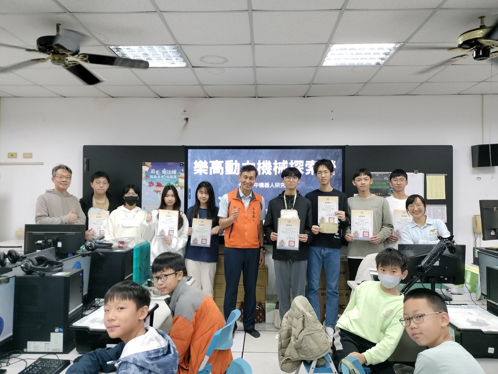 2026-02-06 大里區 大里高中 機器人研究社社長曾子碩、學務處報導 報導點閱數:61 次校園新聞為期一天的營隊分成三個部分:橡皮筋槍;陀螺發射器;鐵鎚機器人 1.活動一開始先進行活動介紹與零件認識,讓學員初步認識EV3機器人的基本構造。接著進入實作,學員依照幹部個教學,分別組裝橡皮筋槍、陀螺發射器及鐵鎚機器人。完成組裝後,再教導學員設計程式,主要教學的是迴圈以及切換選擇這兩個控制流程。 2.教學過程中,由社長或副社統一操作電腦畫面並用麥克風說明,確保所有學員可以同步進行。其他幹部則在各排旁邊協助學員找零件、檢查組裝步驟。當學員組裝錯誤時,幹部會先引導他們把實際作品與教學圖片對照,讓學員更能明確看出錯誤並修正。 3.完成程式後,安排約10至15分鐘,讓學員操作自己完成的機器人,給予他們探索與嘗試的機會。活動最後,一起拍攝大合照,為本次營隊畫下圓滿句點。 大里高中機器人研究社成立第二年,今年寒假由第二屆社長曾子碩帶領高中生幹部,並攜手剛考完學測的高三第一屆幹部,再次推出樂高EV3機器人體驗課程,並挑戰與前幾次不同的組裝設計教學。 本次是第三度在永隆國小辦理一日體驗營,非常感謝永隆國小張永志校長與莉淳老師大力支持與協助。本校社團指導老師張秉松老師也到現場協助營隊進行,下午仲凱校長也前往國小勉勵學生。 大里高中有豐富教學資源,除了社團自主辦理營隊,本校教務處亦指導科學班規劃辦理寒假科學營隊提供國小學童豐富趣味的課程,能夠跟社區學校共享資源共成長,十分幸運,希望未來整個大里地區的科技教育能繼續蓬勃發展。 撰稿:機器人研究社社長曾子碩(活動內容) 責任編輯:社團活動組長