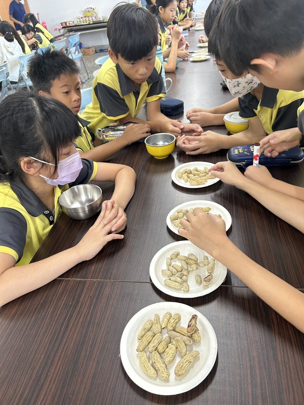 除此之外,利用本學期食農教育的課程時間,營養師帶領四年級學生進一步透過視覺、嗅覺與觸覺的感官體驗,親近花生的外觀與氣味,並透過影片欣賞及小遊戲活動,了解臺灣花生的產地故事與農民的辛勞,學習珍惜食物、感恩土地。