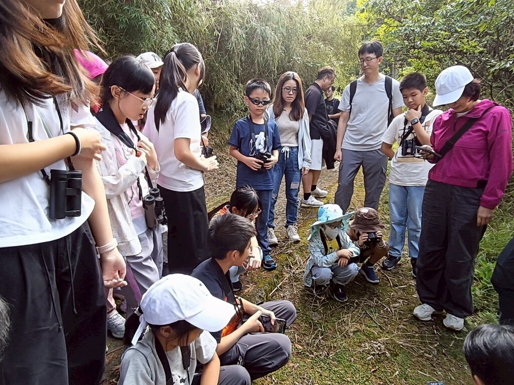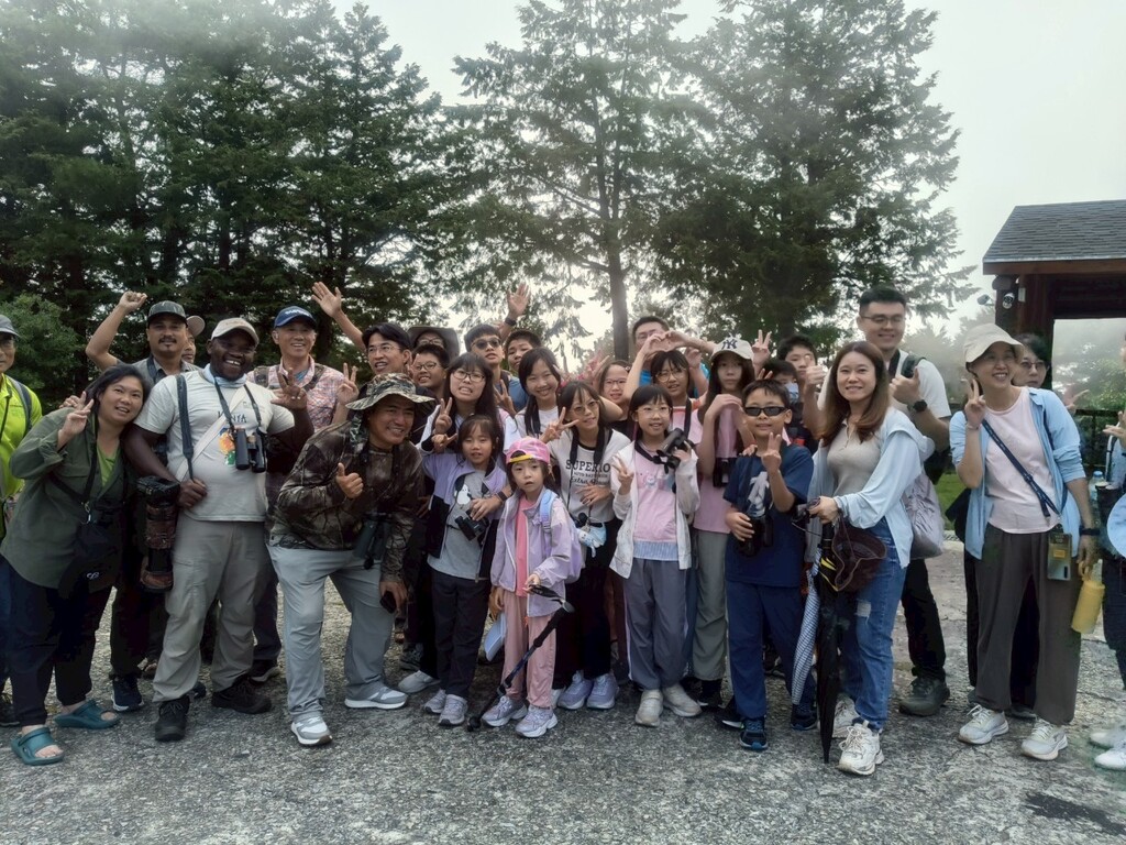 更令人難忘的是,隊伍巧遇台灣野鳥協會與來自澳洲、巴西、不丹、尼泊爾、肯亞、烏干達、西班牙、馬來西亞等九個國家的十四位國際友人。學生們帶著好奇與笑容,與遠道而來的自然愛好者交流,分享觀察心得,這場跨越國界的對話讓孩子們眼界大開,體會到自然保育的價值並非一地之事,而是全世界共同的責任。