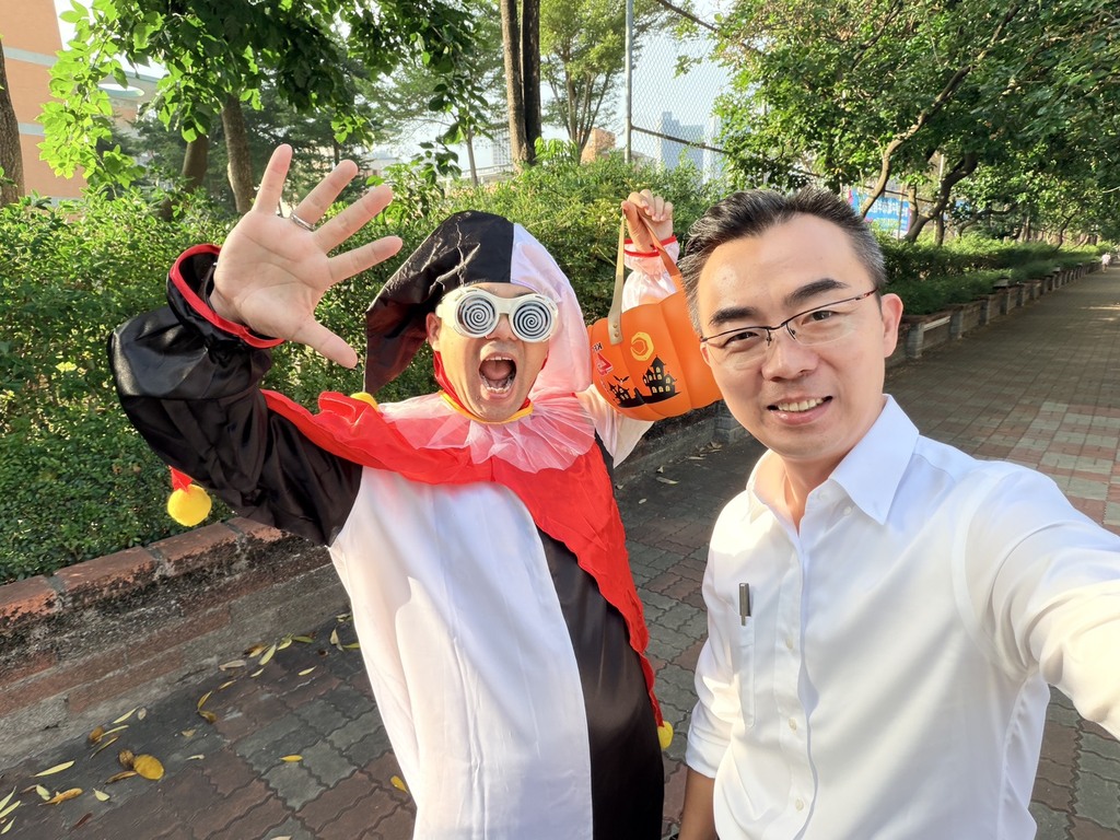 家長會長也熱情響應,特別在校門口化身萬聖角色,親自發送糖果給上學的孩子們,為清晨的校園增添滿滿甜蜜與溫馨。