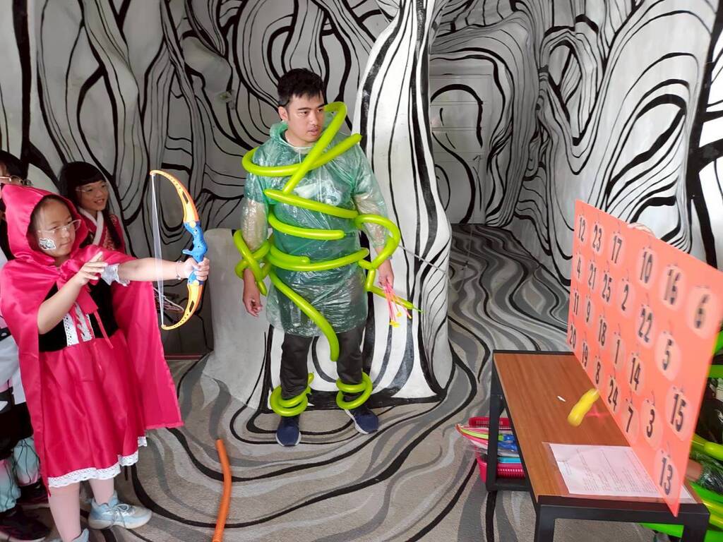 每一關都暗藏玄機——有的要用英語答題、找出神秘糖果;有的要動手製作小道具、完成任務挑戰。孩子們尖叫連連、笑聲不斷,當成功解開謎題時,那份成就感比糖果還甜。整場活動彷彿是一場結合創意與智慧的「知識冒險」,讓學習不再只是課本裡的文字,而是活生生的體驗。