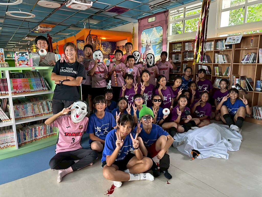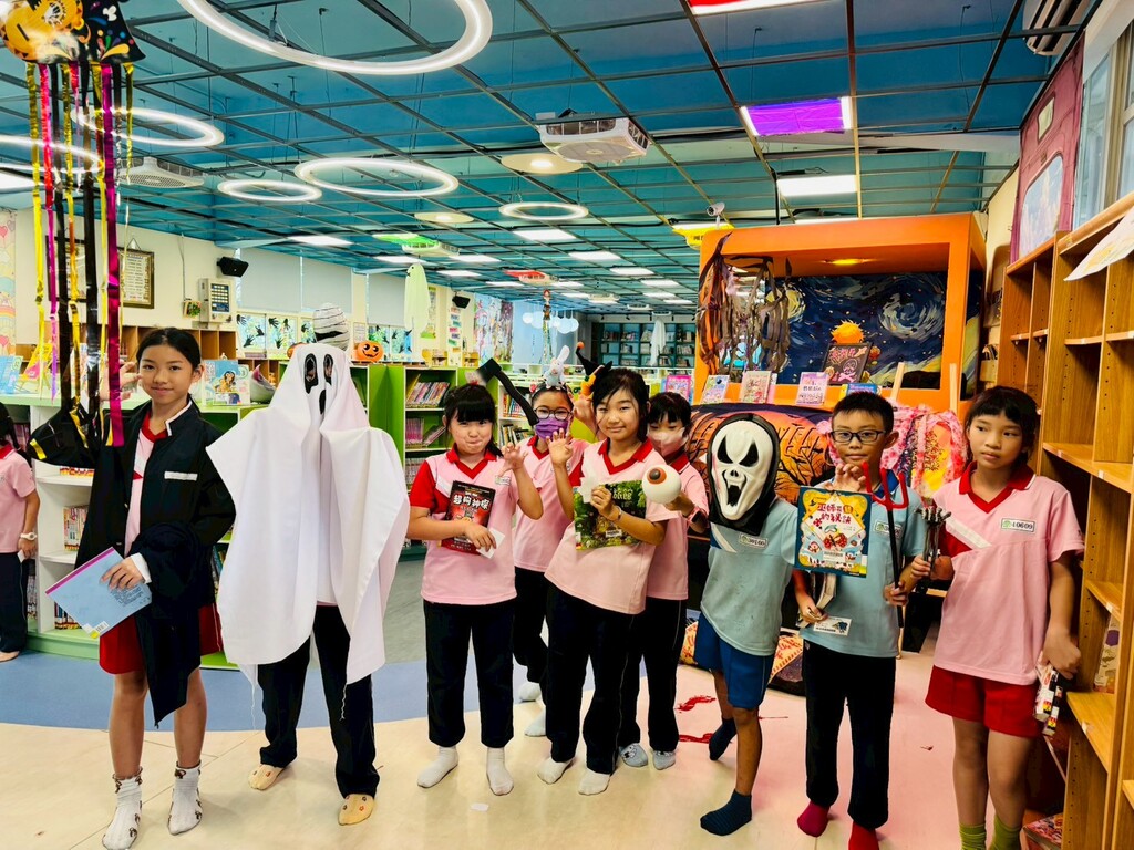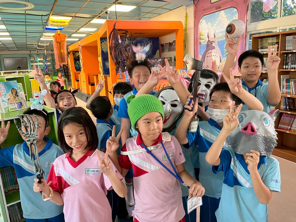 今年萬聖節,圖書室辦理借閱說出通關密語「 Trick or Treat?Happy Halloween! 」活動,愛媽們用心布置更是將圖書室大改裝,讓圖書室充滿搞鬼氣息,師生們除了至圖書室借閱書籍,說出通關密語,還可以變裝搞鬼一番,愛媽們甚至利用大下課時間特地扮裝至校園內快閃-不給糖就搗蛋,讓全校親師生在這一天充分感受萬聖節氛圍,週五開心一整天。