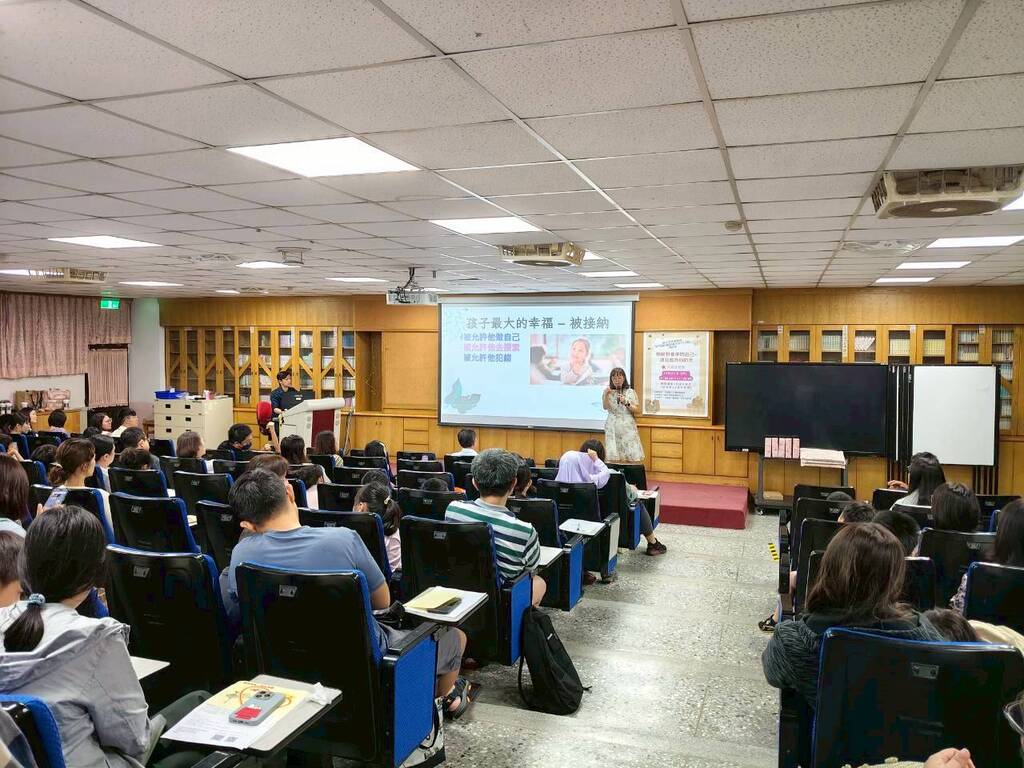 為了協助家長提升親職能力,增進親子間良性的互動,九德國小輔導室特別在11月8日星期六舉辦了一場親職講座,輔導主任邀請到吳嘉凌老師擔任講座的講師,嘉凌老師透過醫學和心理發展的方面,讓家長了解到讚美、正向、鼓勵的愛的語言才能讓孩子的身心更成熟和健全,而批評的責備話語只會讓親子間的互動受到不可彌補的傷痕。