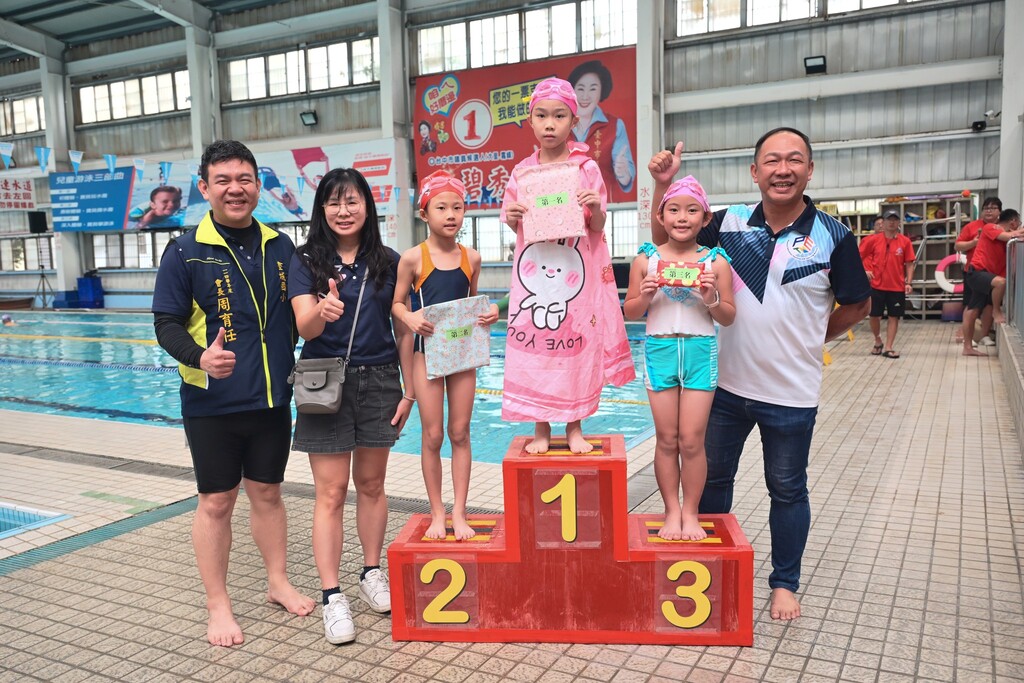 賽事從浮板踢水、捷式、蛙式到高難度的蝶式,孩子們皆奮力展現平日的練習成果。而最受歡迎的「親子接力」與「水中尋寶」更是將氣氛帶到最高點。