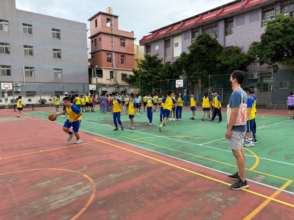 比賽正式開始後,六年四班展現出平穩的速度與節奏,大家互相鼓勵與加油。洪嘉賢老師的指導聲也穩定地推著球隊前進。孩子們在場平穩且順暢完成8分鐘罰球與上籃計時賽,不放過任何一個得分機會。