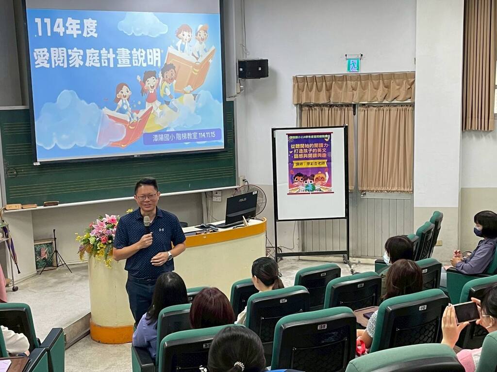 活動一開始,由校長致詞表示,閱讀是孩子面對世界的重要能力,而家庭是閱讀習慣最堅強的土壤。校長指出:「在忙碌的生活中,家長願意抽空與學校一起關心孩子的閱讀發展,這份陪伴本身就是對孩子最深遠的支持。」校長也提到,閱讀不僅能提升語言能力,更能讓孩子在故事中培養同理、勇氣與思考力,而這些都是面對未來挑戰不可或缺的素養。