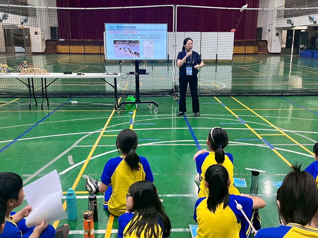 課程一開始由教授們引導孩子認識河川在城市發展中的角色,並理解橋樑如何連結地理、運輸與人類生活。接著介紹各種類型的橋樑與其背後的結構力學原理,孩子們透過圖片、模型與示範,逐步建立起對工程概念的基礎認識。