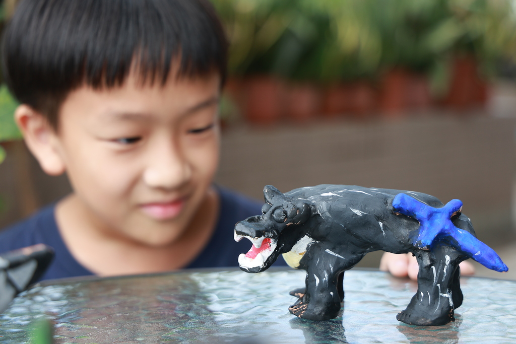 活動成果不僅體現了學生技藝的顯著提升,更驗證了本校在推動美感教育、培養創新思維上的策略性成功。在捏陶過程中,學生們親手揉捏、塑形,感受泥土的溫度與彈性,無論是斑斕點點的台灣石虎、色彩鮮明的帝雉,或是顏色豐富的五色鳥,每一件作品都展現了孩子們純粹的內在世界。這種從平面圖片轉向三維立體雕塑的創作過程,不僅極大地提升了學生的空間結構認知與精細動作技能,更教會他們如何透過具體實物來表達複雜的情感與故事,充分展現了學生的想像力與創造力。