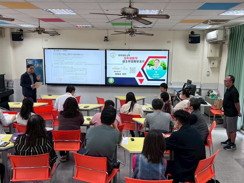 既是「數學」領域課程,亦是「數位學習」課程,僑孝國小在11月21日,於五年四班進行了一場數位時代下的數學領域示範教學公開課程。本次公開課活動不僅邀請林秋斌教授及葉晉源主任到場指導外,更開放推動中小學數位學習精進方案的夥伴學校教師到校交流,見證數位科技協助數學領域學習的教學歷程。