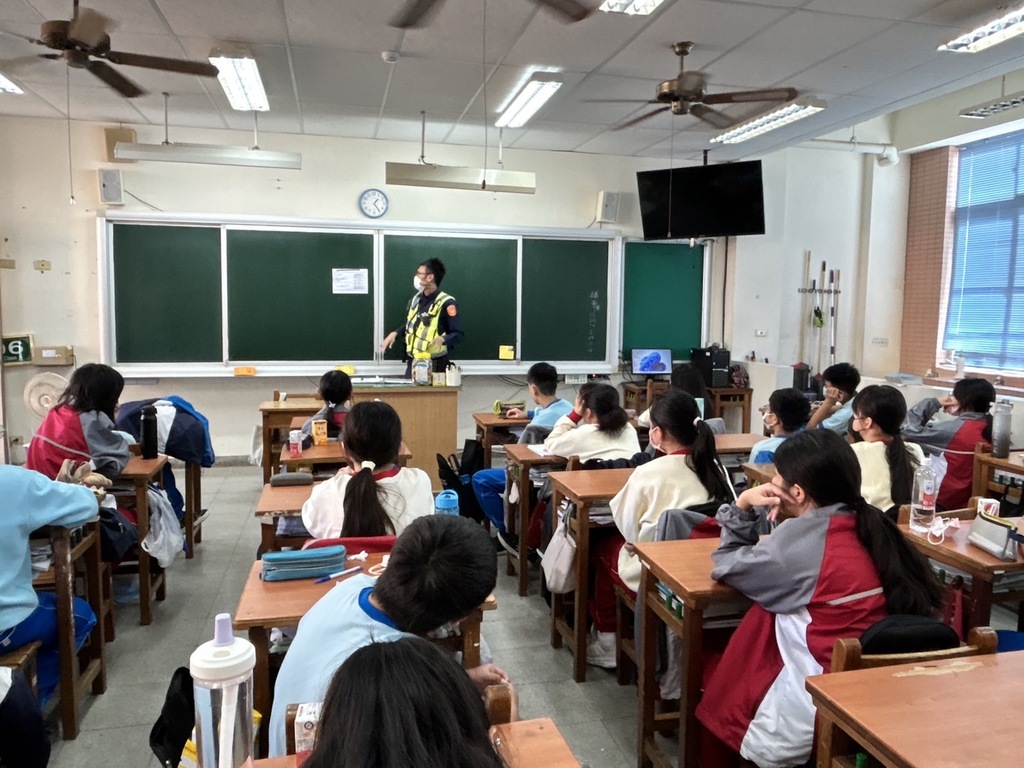 為提升學生對國防安全的理解與自我保護能力,后里國中於11月24日下午特別邀請月眉派出所張柏威警員,走入班級進行「防空避難」宣導。活動以生活化情境為主軸,透過實例解析與影片資料,協助學生認識防空警報的類型、避難步驟與緊急狀況應變的正確概念。