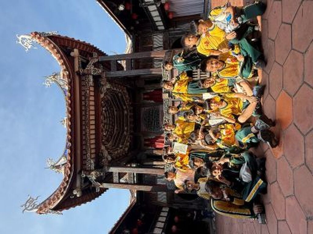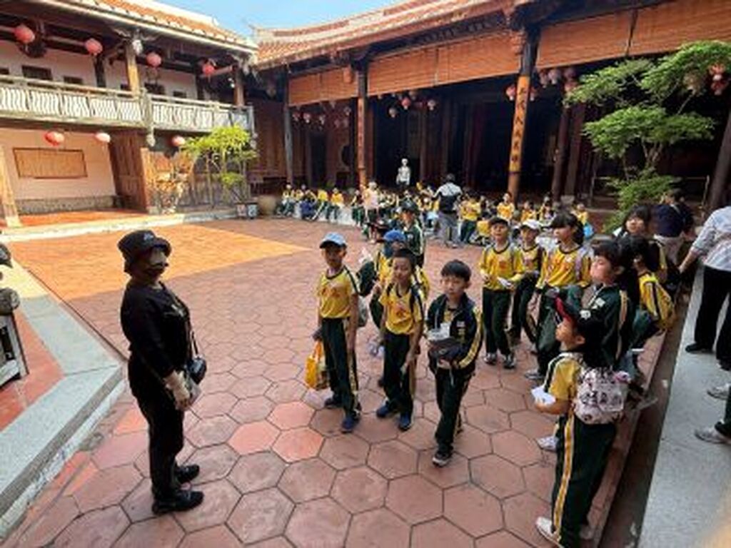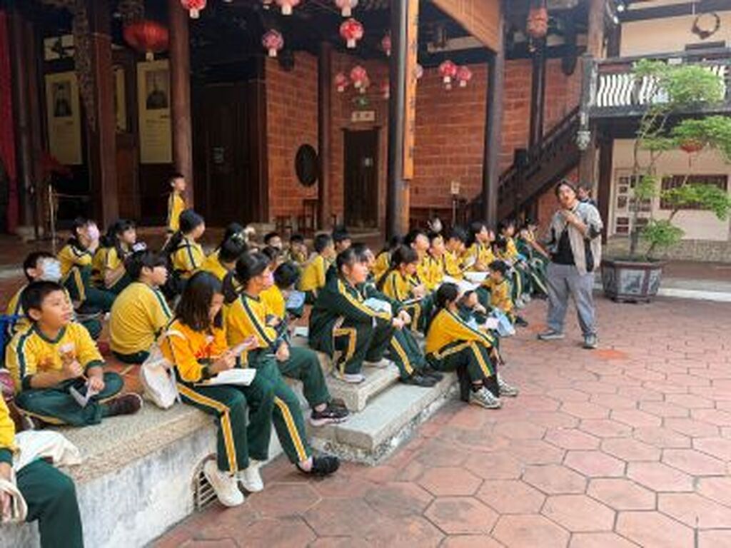 今天四年級學生參訪的下厝範圍包含:草厝、宮保第、大花廳、二房厝(將軍府)、二十八間等建築。其中林家「宮保第」為台灣現存規模最大的清代官府宅第,興建於1850年代,後於1870年-1895年經其長子林朝棟擴建成為面寬十一開間的五落大厝。大花廳則是臺灣唯一的福州式戲臺建築,堪稱臺灣的經典建築。
