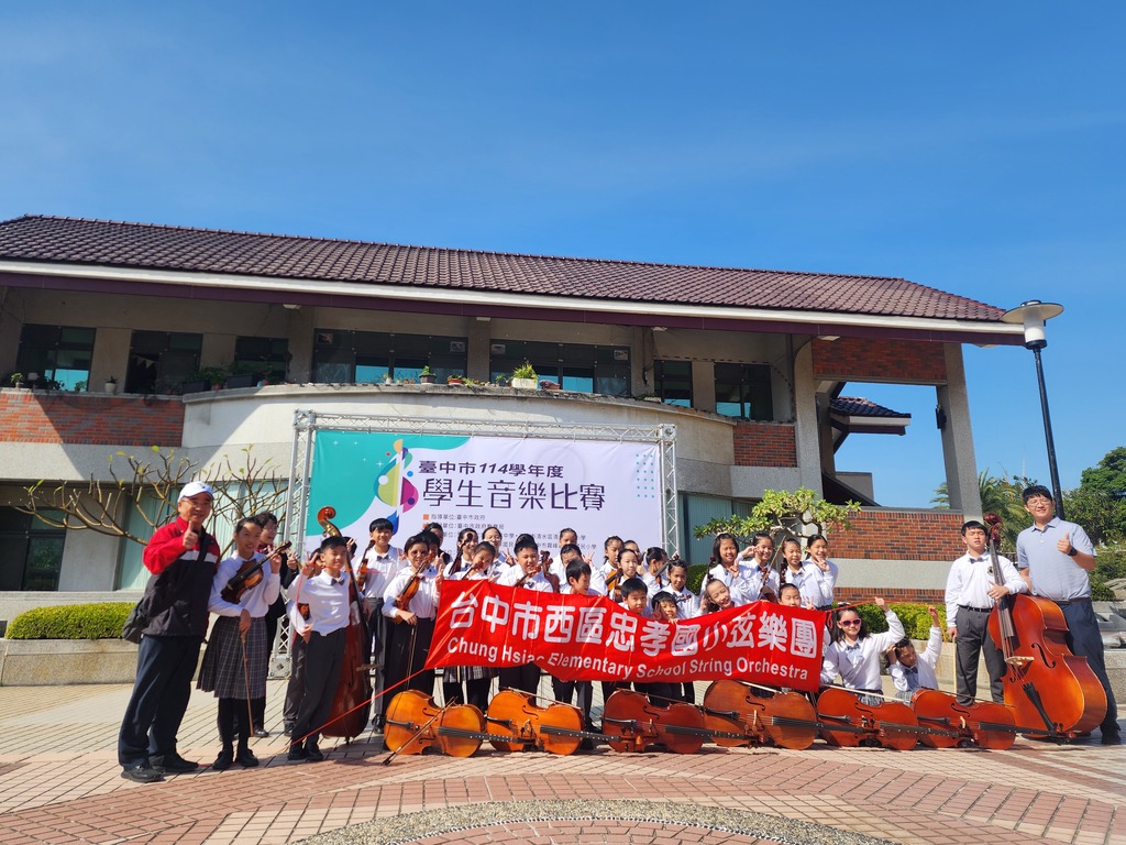 忠孝國小弦樂團在 114 學年度臺中市學生音樂比賽中表現亮眼,於全市六支參賽隊伍中脫穎而出,榮獲「優等」殊榮,更以全市第二名的佳績成功晉級全國賽!這份榮耀不僅是孩子們長期努力練習的成果,更展現了師生、家長與學校三方攜手合作的力量。