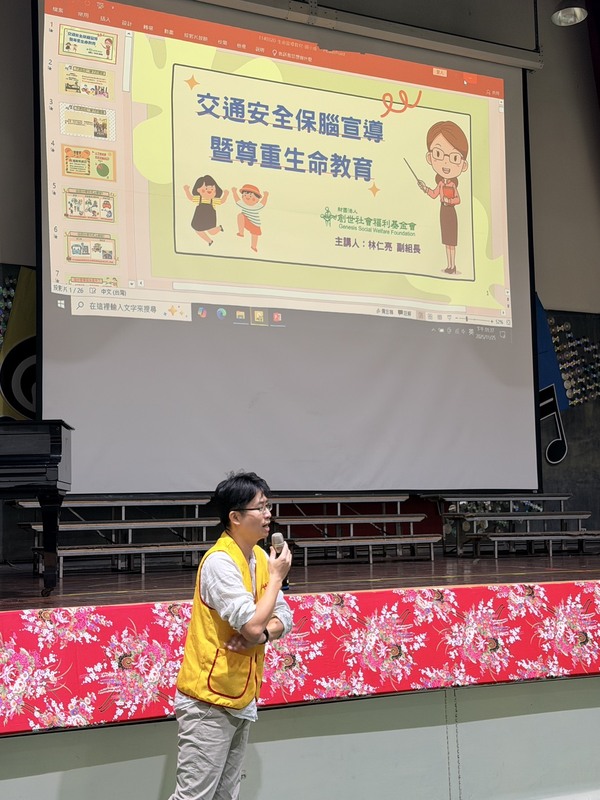 在生命教育之後,林老師進一步帶入「交通安全保腦宣導」的重要內容。他提醒孩子遵守交通規則、騎乘與乘坐交通工具時務必做好防護,不僅是保護自己,也是守護家人的平安。透過影片與真實案例的分享,孩子們更清楚了解戴安全帽的重要性,以及在日常生活中應養成的各項安全習慣。