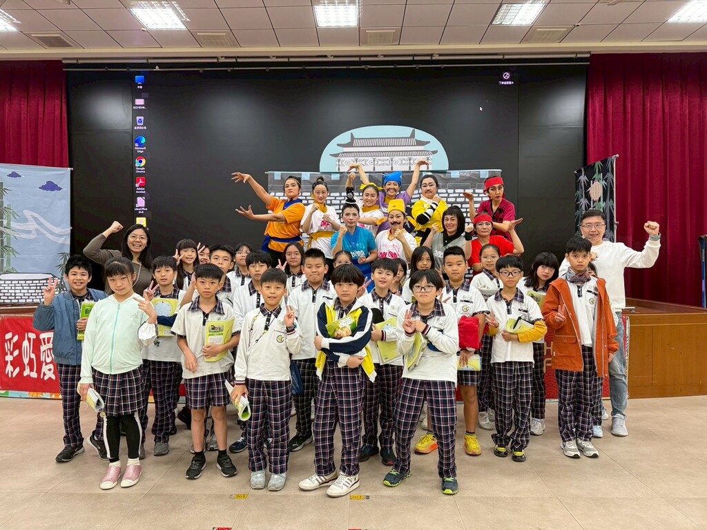 本校在11/27週四這天特邀彩虹愛家生命教育協會到校,進行兒童音樂劇《最好的師傅》演出!故事發生在一個名為白羊城的地方,居民們正面臨著惡名昭彰的「赤蛇派」的威脅。城裡的人們起初分崩離析,縣長逃跑、捕頭自私、百姓互不信任。此時,傳說中的功夫大師黃師傅出現,自願教導村民們武功來自保,最終打敗壞人。