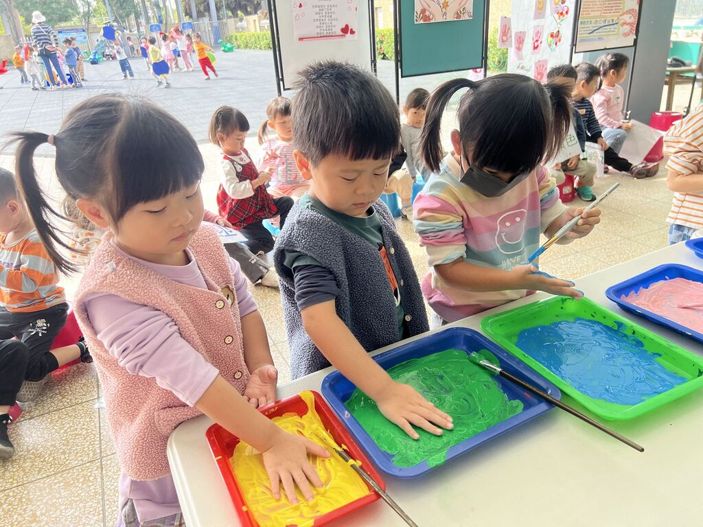 活動仍在熱烈進行中,不少班級陸續加入響應,大家也非常期待最後呈現、由全園手印凝聚而成的成果。幼生李欣霏說:「我蓋紅色的手掌,我愛大家。」幼生柯念成則分享:「謝謝大家來蓋手印,我好開心。」劉彥麟老師說:「這學期主題「YES!我可以」,不只是陪伴孩子練習生活自理能力,在即將到來的歡樂聖誕月裡,我們更希望孩子能學會把愛說出來、把感謝表達出來。樹蛙班這次「愛的聖誕樹」的初心,就是「感謝」。我們邀請全園一起參與,用一個個繽紛的手掌印串起「手心裡的愛」,也連結對身邊每一位愛我們的人的真摯謝意。這次為期三天的「手心裡的愛」蓋手掌印活動,因為全園班級眾多,活動時間拉得比較長,負責小任務的小樹蛙們偶爾會出現調皮可愛的小狀況,但這些過程中的點點滴滴,正是樹蛙班最獨一無二的共同回憶。這個活動很感謝南屯幼兒園所有夥伴願意陪著孩子們,一起完成這棵充滿愛的聖誕樹,愛你們呦!「愛的聖誕樹」即將在校園中溫暖登場…。」