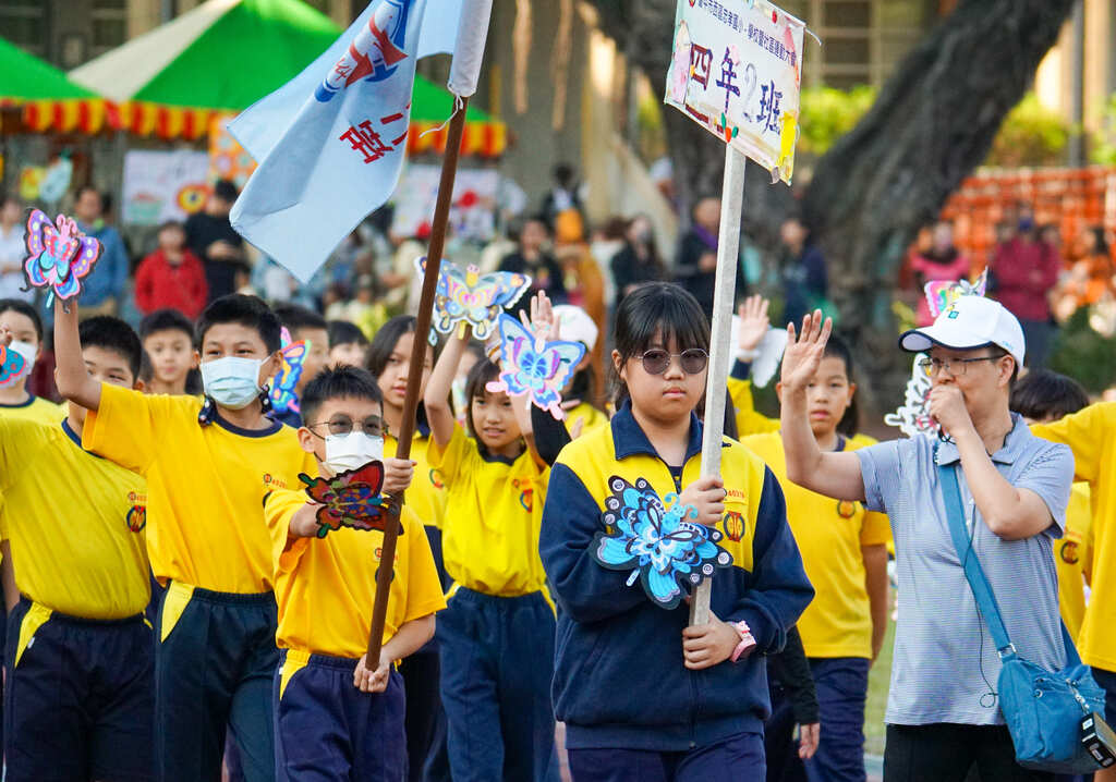 忠孝國小130週年校慶運動會,四年級的進場主題是「忠孝歡樂嘉年華」,