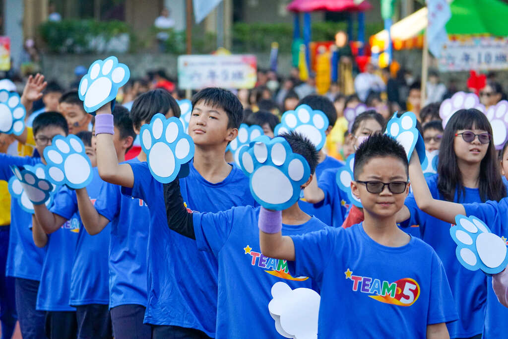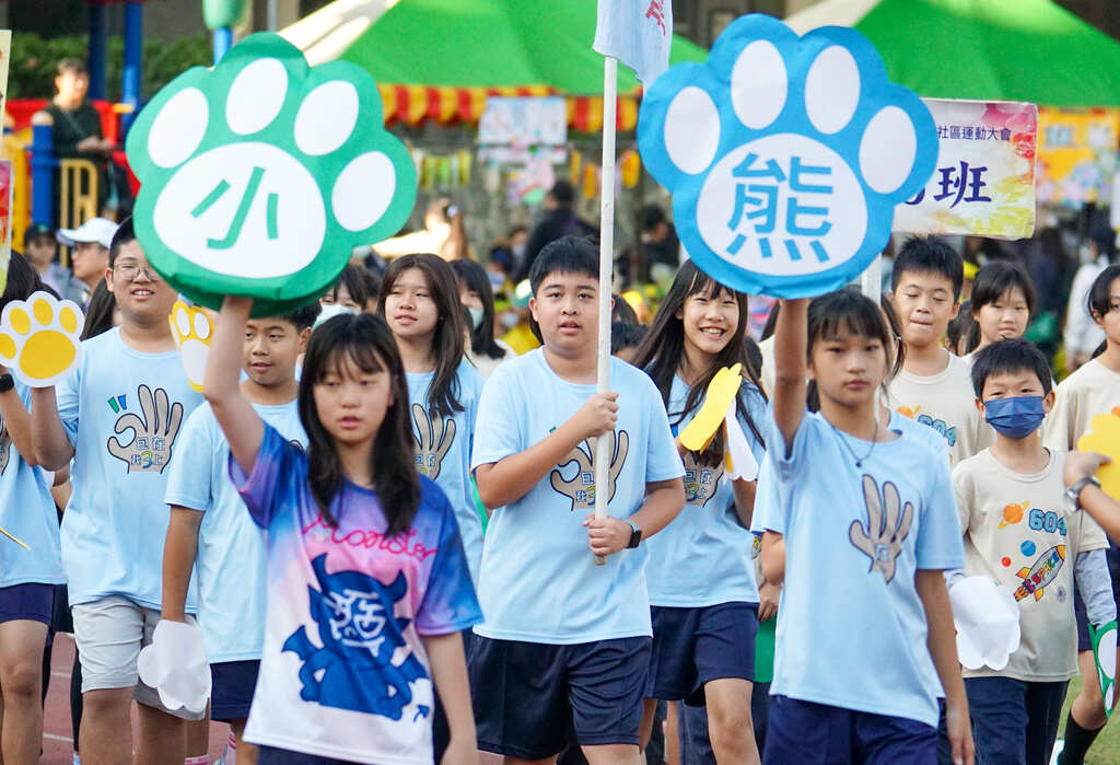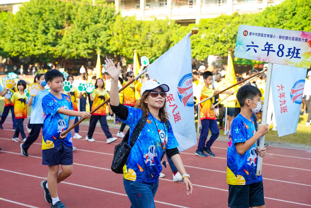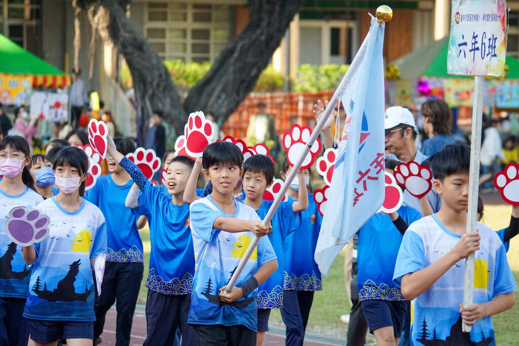 忠孝國小130週年校慶運動會,六年級學長姊進場。