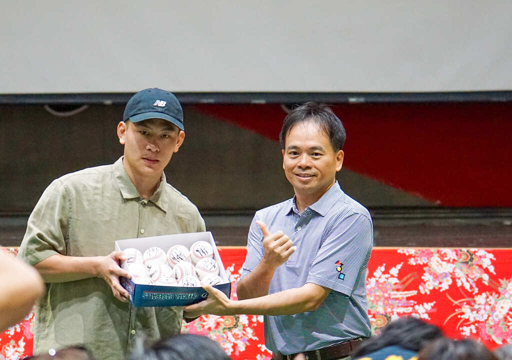 在全場親師生的熱烈歡呼中,戴培峰與校友會、家長會、棒球隊及在校師生代表,共同於操場進行象徵性的「幸福接力」。他們以2012 年本校棒球隊在日本勇奪 IBA 世界少棒冠軍的紀念球及去(2024)年奪下諸羅山盃國際少棒邀請賽冠軍的冠軍旗接力傳遞,展現忠孝棒球精神跨越時空、代代傳承的力量。