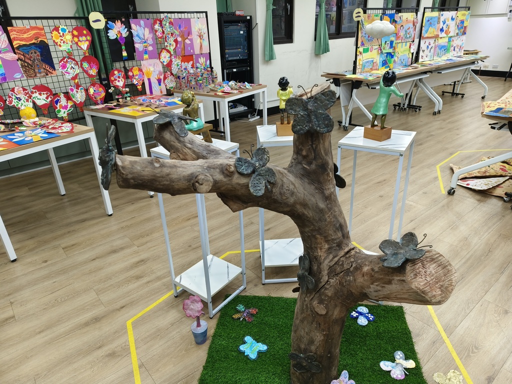 本校位於大肚台地,孕育多元人文地景與豐富生態資源,長期深耕藝術教育與閱讀教育,致力打造「公園型美感小學」。繼第一年「種子花開」課程後,今年進一步以雕塑銅雕呈現孩子心目中的紫斑蝶,象徵從毛毛蟲蛻變為蝴蝶的成長歷程。課程中,學生親手完成「鋁線編織骨架→泥塑成形→上色」等步驟,並搭配木盤底座打磨,最終化為精緻的桌飾擺件。
