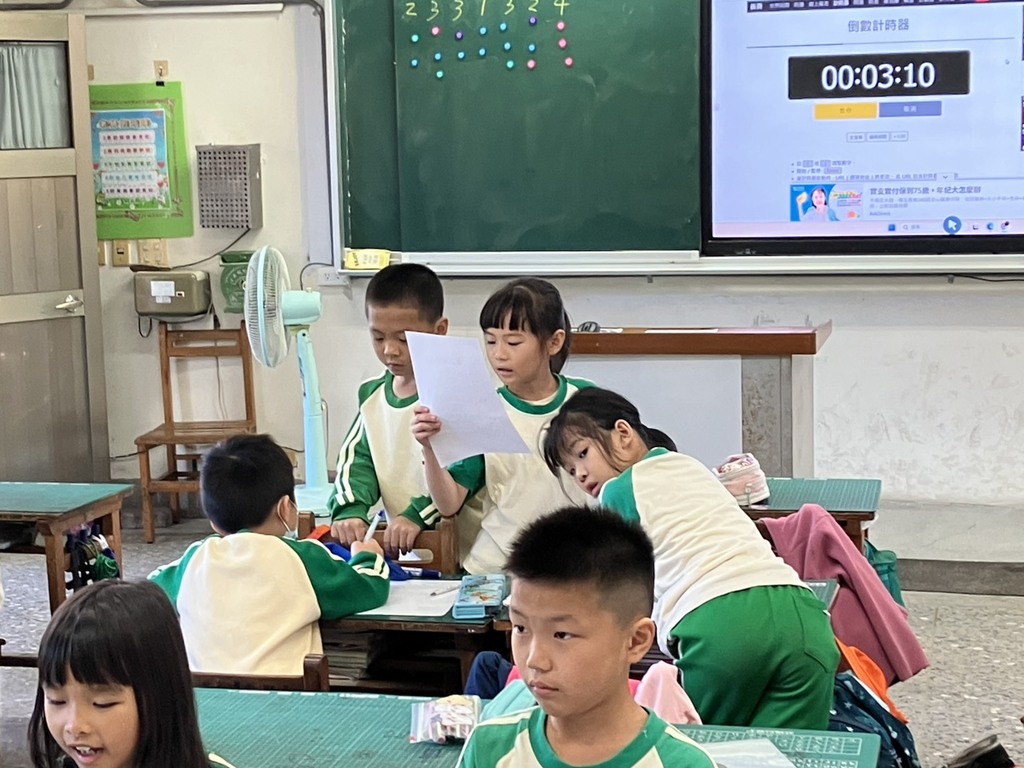 "各位同學早安 我們是第四組…?" 教學演示是教育實習中最奮力的一擊,北屯國小校風鼎盛,每年都有許多實習老師申請實習。11月起陸續有實習老師舉行教學演示,指導教授及輔導老師蒞校進行輔導與觀摩。公開課教學演示是教師透過一場公開授課來展示教學成果、與同儕交流學習的活動。實習老師方老師規劃英語語文教學搭配各類評量遊戲,彙整各組討論資料,讓學生充分討論與發表。