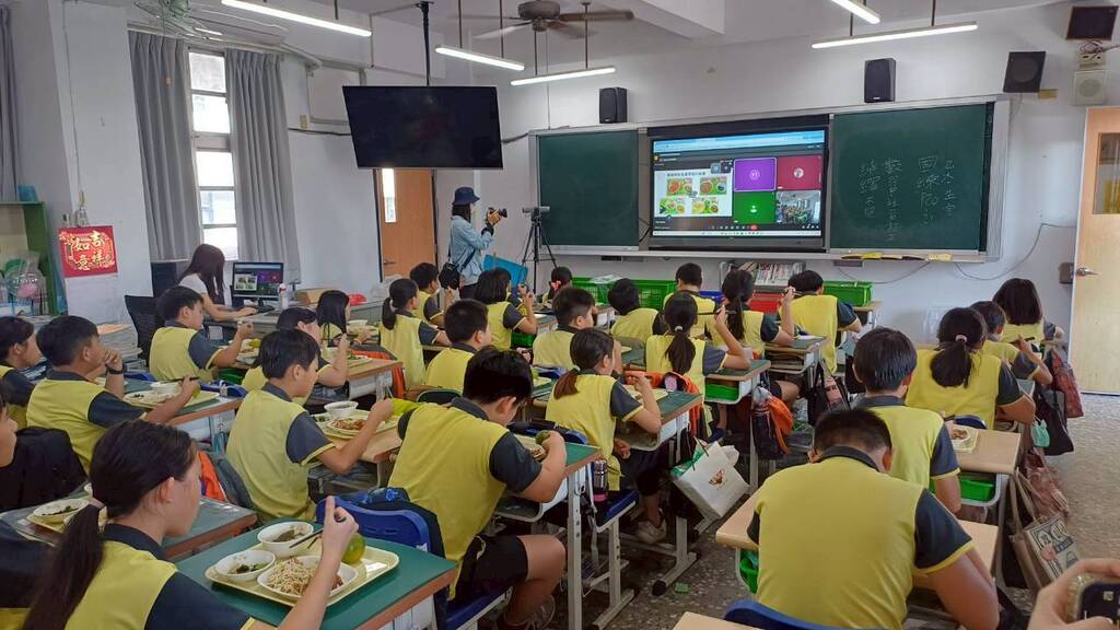 午餐供應當天,本校五年三班的學生們參與了日本福井縣南越特別支援學校的櫻川朗江營養師的線上直播教學。大享食育協會更貼心提供日本學生在校用餐時使用的餐盤,讓參與的同學更能身歷其境,享用日本餐點!
