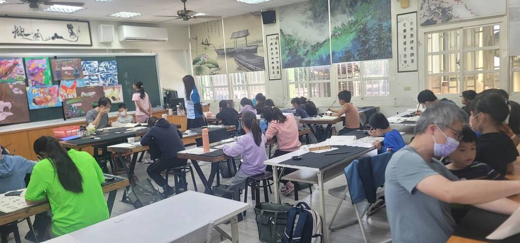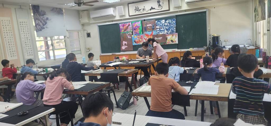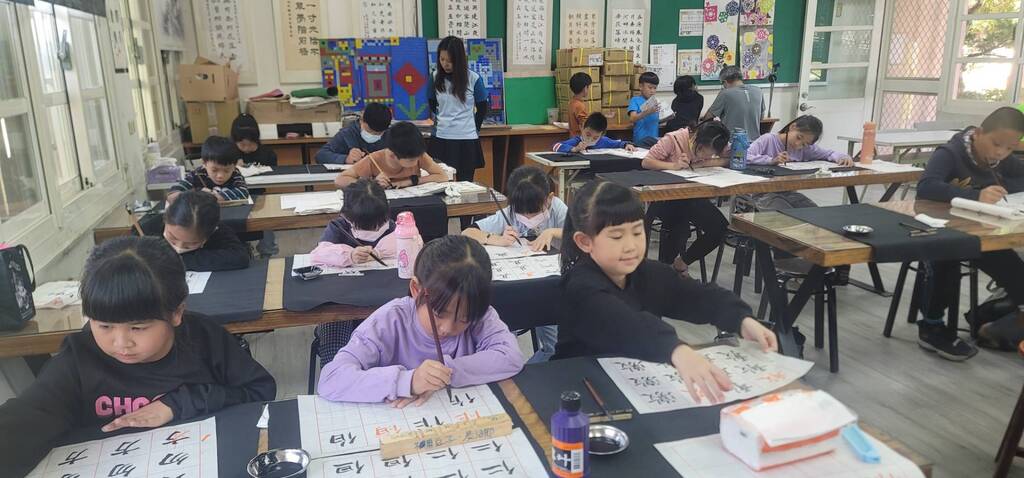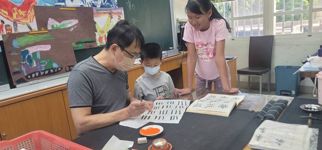 東山國小的週六日常就是上書法課,感謝國毅老師、晟宏主任指導,也感謝嘉雯榮譽會長一同來照料學生。