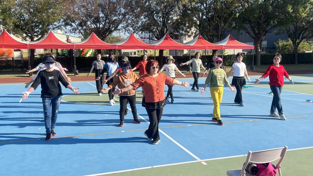 114.11.29~東山國小志工,運動會表演前緊鑼密鼓賣力練習,為我們阿嬤級的志工們鼓勵鼓勵-------