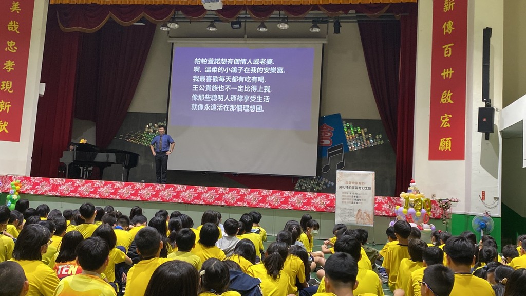 忠孝國小秉持「薪傳百卅,永續傳新」的教育願景,持續推動多元閱讀與藝術素養課程,為孩子打造視覺、聽覺、閱讀與思辨並進的學習場域。12月2日(週二)下午最後一節課,在閱推暨音樂總監黃珮瑄老師的精心規劃與親自邀請下,特別迎來國內知名聲樂家 Domingo—姚盈任老師蒞臨忠孝堂,帶來一場音樂會等級的《莫札特魔笛奇幻之旅》講座,為五、六年級學生開啟跨域閱讀與音樂鑑賞的新篇章。